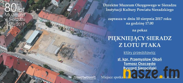Muzeum Okręgowe w Sieradzu warto też odwiedzić o godz. 17:00, bo na czwartkowe popołudnie zaplanowano też pokaz "Piękniejący Sieradz z Lotu Ptaka", który przedstawią st. kpr. Przemysław Okoń, Tomasz Oszczęda oraz Ryszard Sierociński.