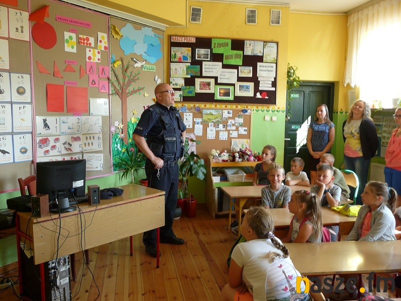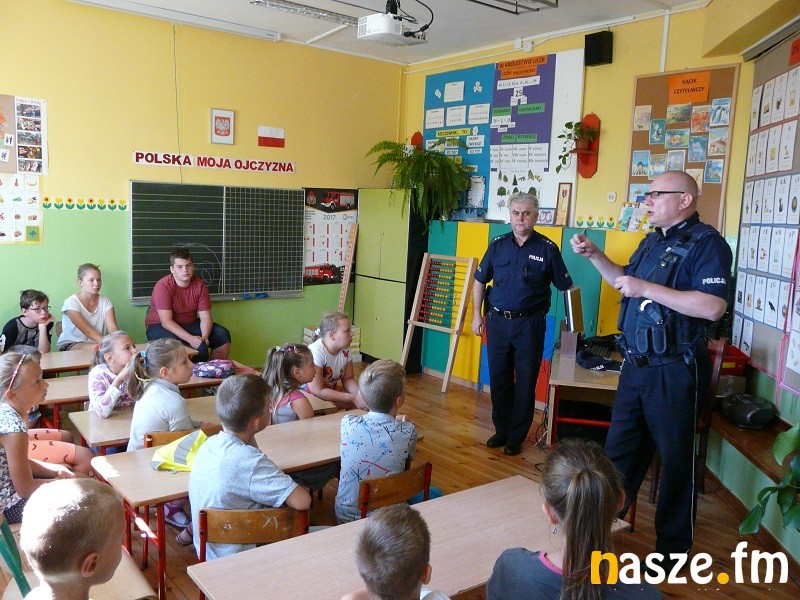 W trakcie spotkań nie zabrakło oczywiście cennych wskazówek dotyczących bezpieczeństwa, w tym bezpieczeństwa pieszych i rowerzystów w ruchu drogowym. Policjanci apelowali też o zachowanie szczególnej ostrożności podczas wypoczynku i zabaw nad wodą. Ostrzegali przed zagrożeniami mogącymi wystąpić w "dzikich kąpieliskach" wskazując, że najbezpieczniejsze jest korzystanie z kąpielisk strzeżonych, a do tego zawsze pod czujnym okiem dorosłego opiekuna. Ostrzegali przed wypadkami, które mogą się zdarzyć podczas prac polowych. Pokazany został sprzęt policyjny, a dzieci mogły odcisnąć swoje palce na przygotowanych kartach do daktyloskopii.