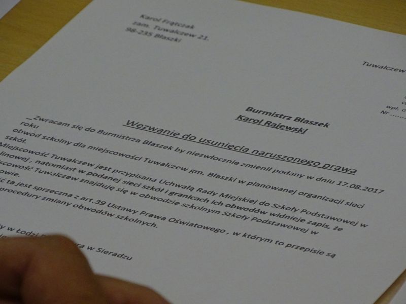 O problemach, protestach i zawirowaniach wokół błaszkowskiej oświaty pisaliśmy wielokrotnie. Ostatnio rodzice uczniów ze Szkoły Podstawowej w Błaszkach domagali się opublikowania przez burmistrza Karola Rajewskiego planu sieci szkół, według którego będą funkcjonować od 4 września. To skłoniło radnych z klubu PSL do wypracowania stanowiska w tej sprawie. Twierdzą, że głównym problemem, z jakim boryka się błaszkowska oświata jest brak dobrej woli ze strony burmistrza. W odpowiedzi na ich zarzuty na stronie internetowej Urzędu Miejskiego pojawiła się informacja o siatce szkół, w której uczniowie z Tuwalczewa zostali przeniesieni do innego obwodu.
