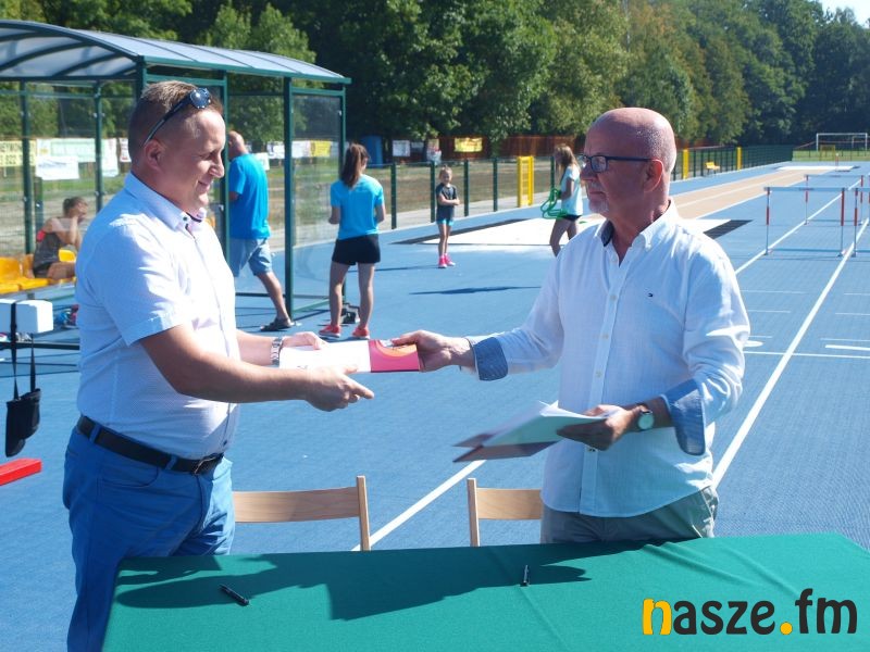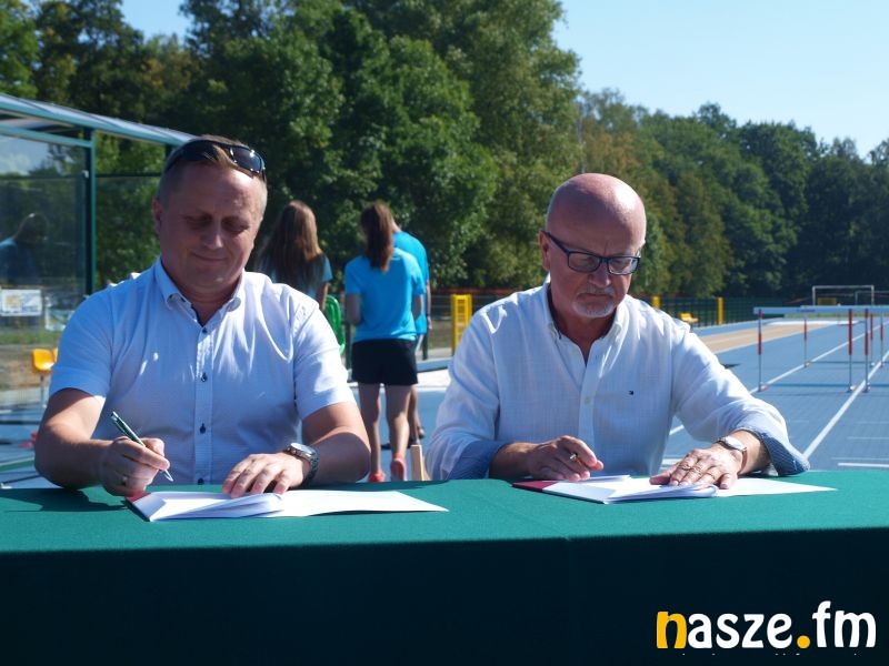 Dziś na stadionie miejskim w Sieradzu podpisano umowę z wykonawcą na drugi etap modernizacji obiektu, obejmujący budowę trybuny, oświetlenia i nagłośnienia.