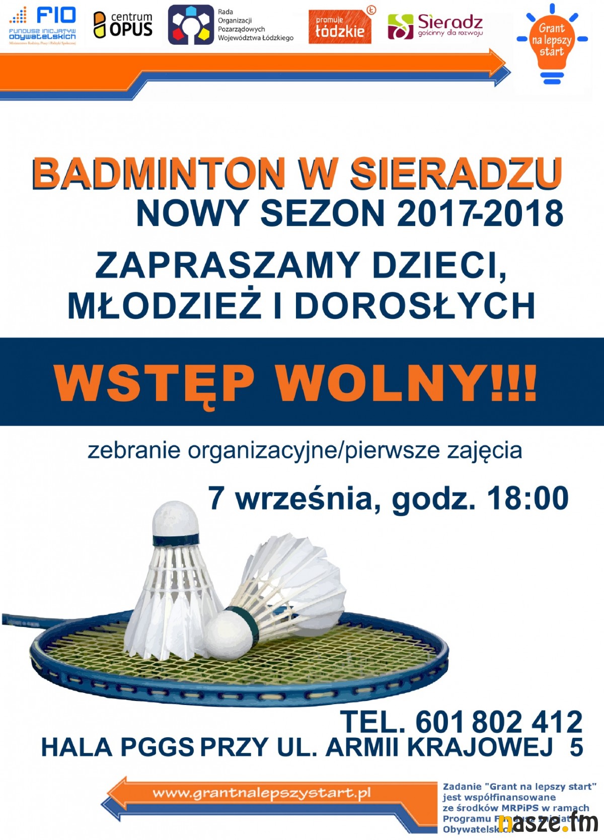 Organizatorzy zapewniają korty z siatkami i lotki. Rakietę najlepiej mieć własną. Dodatkowo, oprócz wymienionych wyżej zajęć jeszcze w tym roku odbędą się w Sieradzu turnieje, w tym bardzo popularny turniej rodzinny.