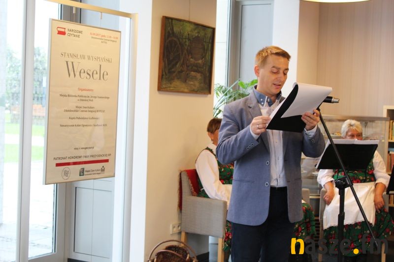 Miejska Biblioteka Publiczna im. Jerzego Szaniawskiego przyłączyła się po raz kolejny do akcji Narodowego Czytania zainicjowanego przez Prezydenta RP. Głośne czytanie fragmentów utworu "Wesele" Stanisława Wyspiańskiego odbyło się w scenerii chaty wiejskiej z kącikiem biesiadnym w tle.
