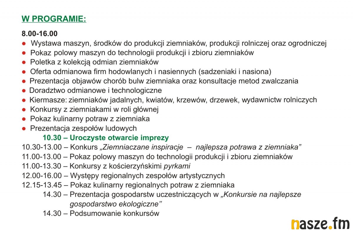 Na polu pokazowym zostaną przeprowadzone pokazy polowe maszyn do zbioru i technologii produkcji ziemniaków.