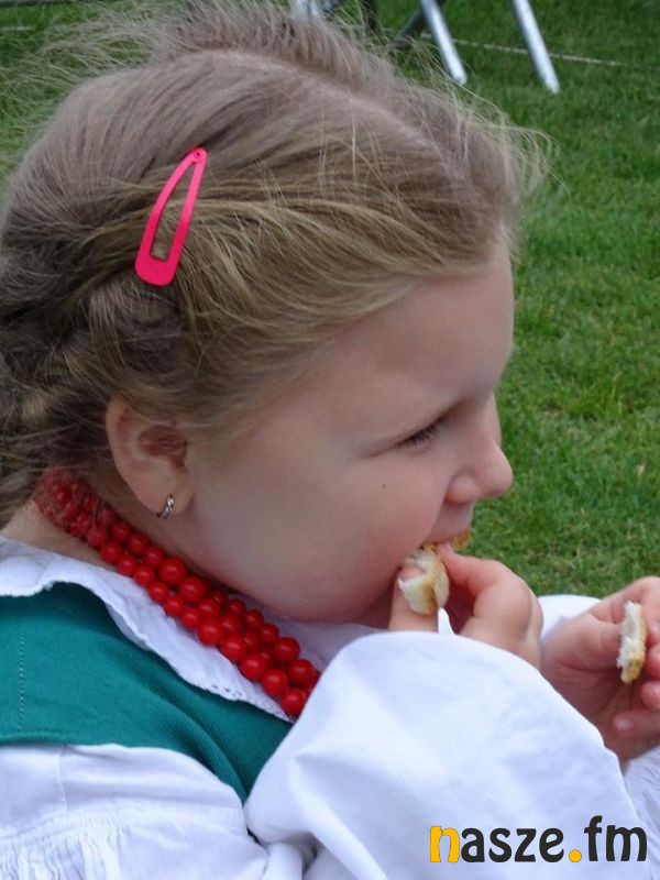 Ważnym punktem części obrzędowej było wspólne ze starostami dożynek - Agatą Banaś z Ochraniewa i Wacławem Maniewskim z Kładów dzielenie chleba wypieczonego z tegorocznych zbóż, którym gospodarze i starostowie w towarzystwie dzieci z MDK „Na pięterku” częstowali uczestników święta plonów.