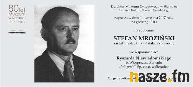 W Muzeum Okręgowym w Sieradzu w czwartek (14 września) odbędzie się spotkanie poświęcone Stefanowi Mrozińskiemu. Zaplanowano je w budynku przy ul. Dominikańskiej 2 na godz. 13:00, wstęp wolny.