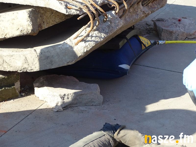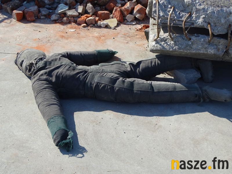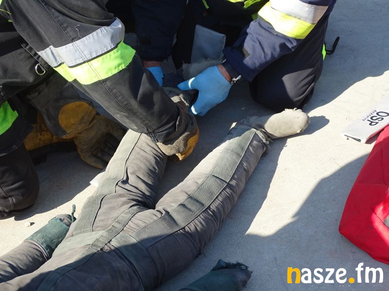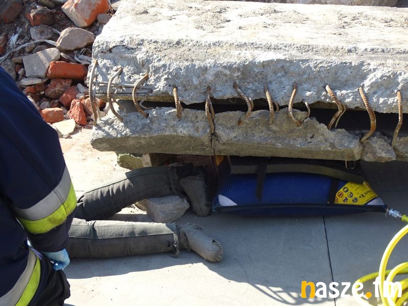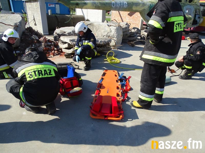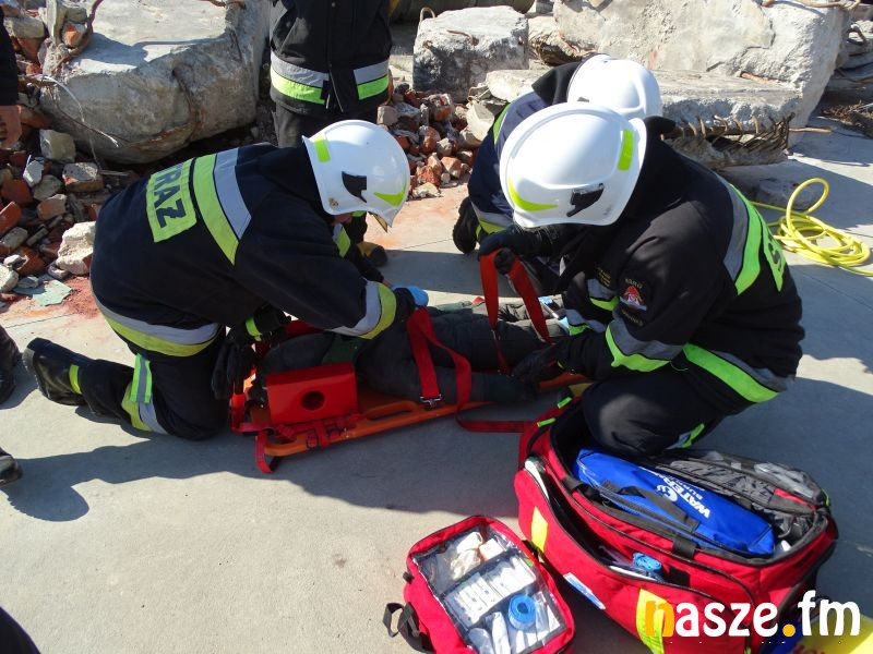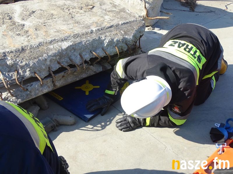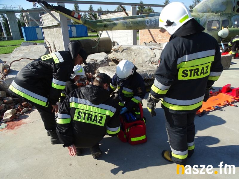- Ćwiczymy w trzech miejscach trzy scenariusze. Tutaj na terenie komendy udzielamy pomocy osobie przygniecionej przez elementy budynku, czyli mamy zawalenie się fragmentu ściany na osobę - mówił kapitan Sławomir Osiewała, zastępca dowódcy Jednostki Ratowniczo-Gaśniczej w Sieradzu.