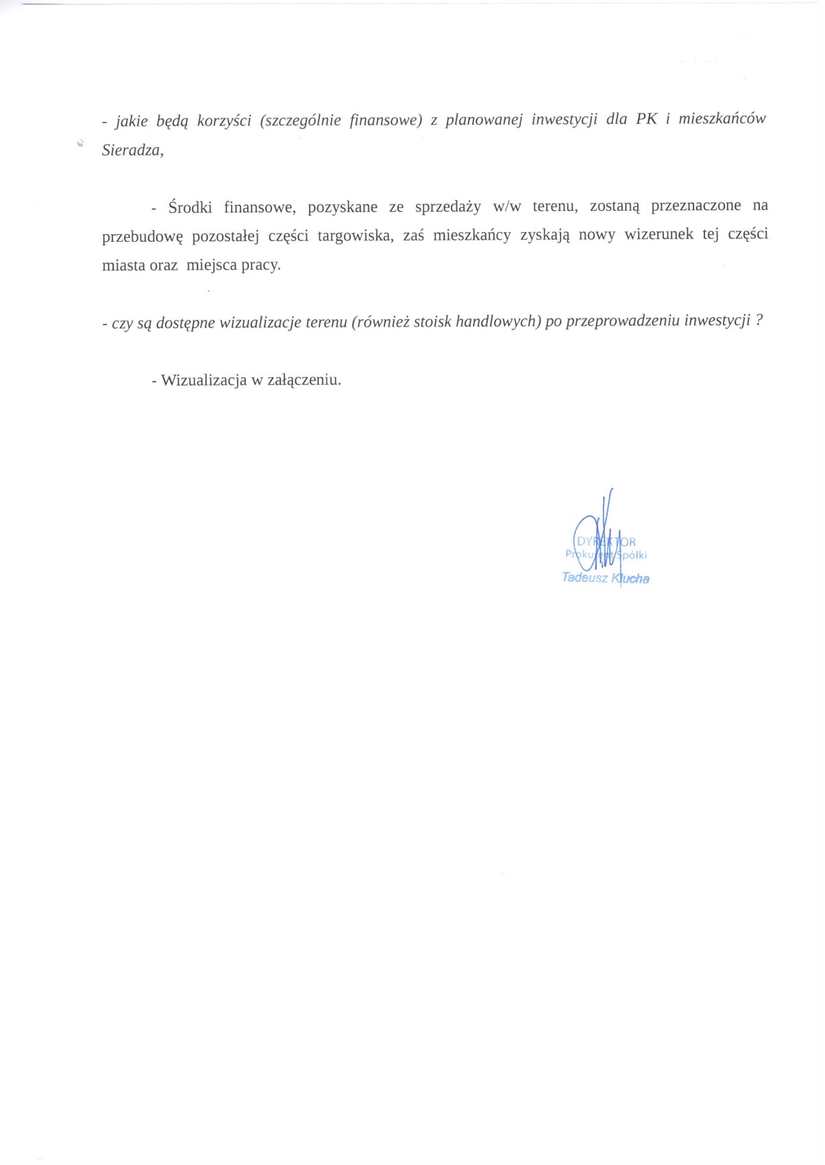 - jakie będą korzyści (szczególnie finansowe) z planowanej inwestycji dla PK i mieszkańców Sieradza,