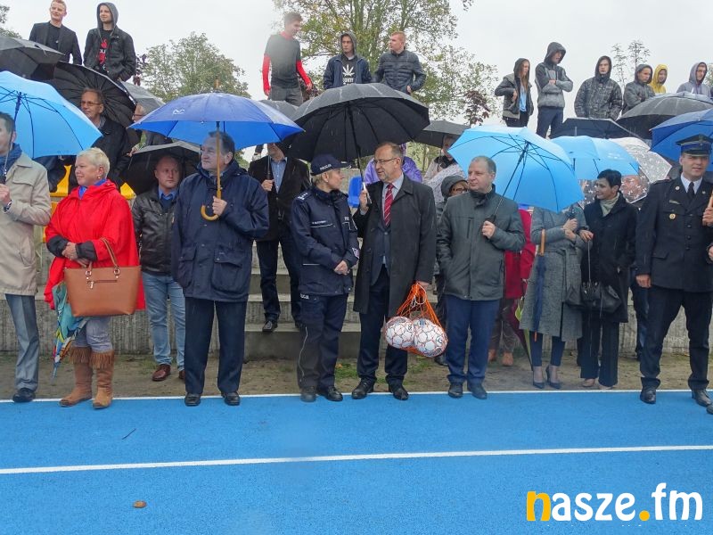 W strugach deszczu otwarto dziś (05.10) zmodernizowane boisko Zespołu Szkół Elektronicznych w Zduńskiej Woli. Inwestycja kosztowała ponad milion złotych.