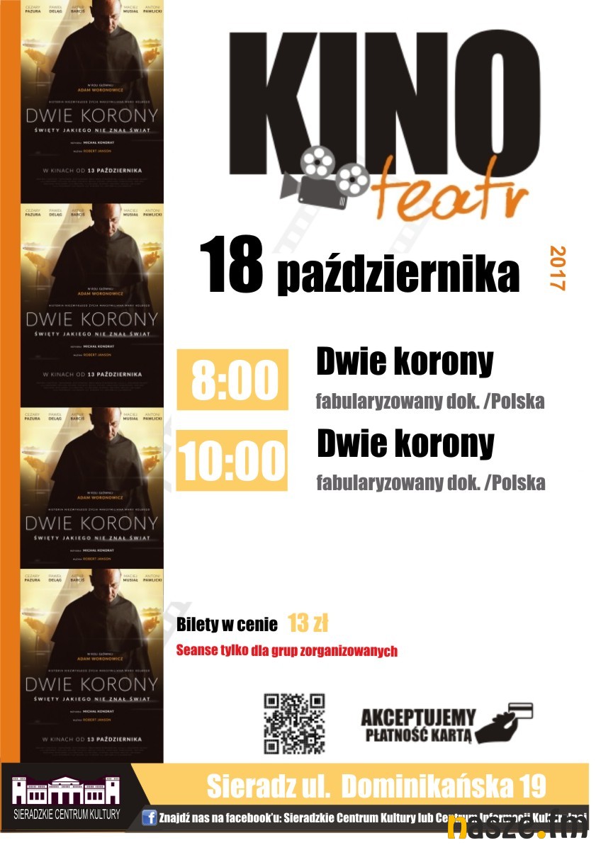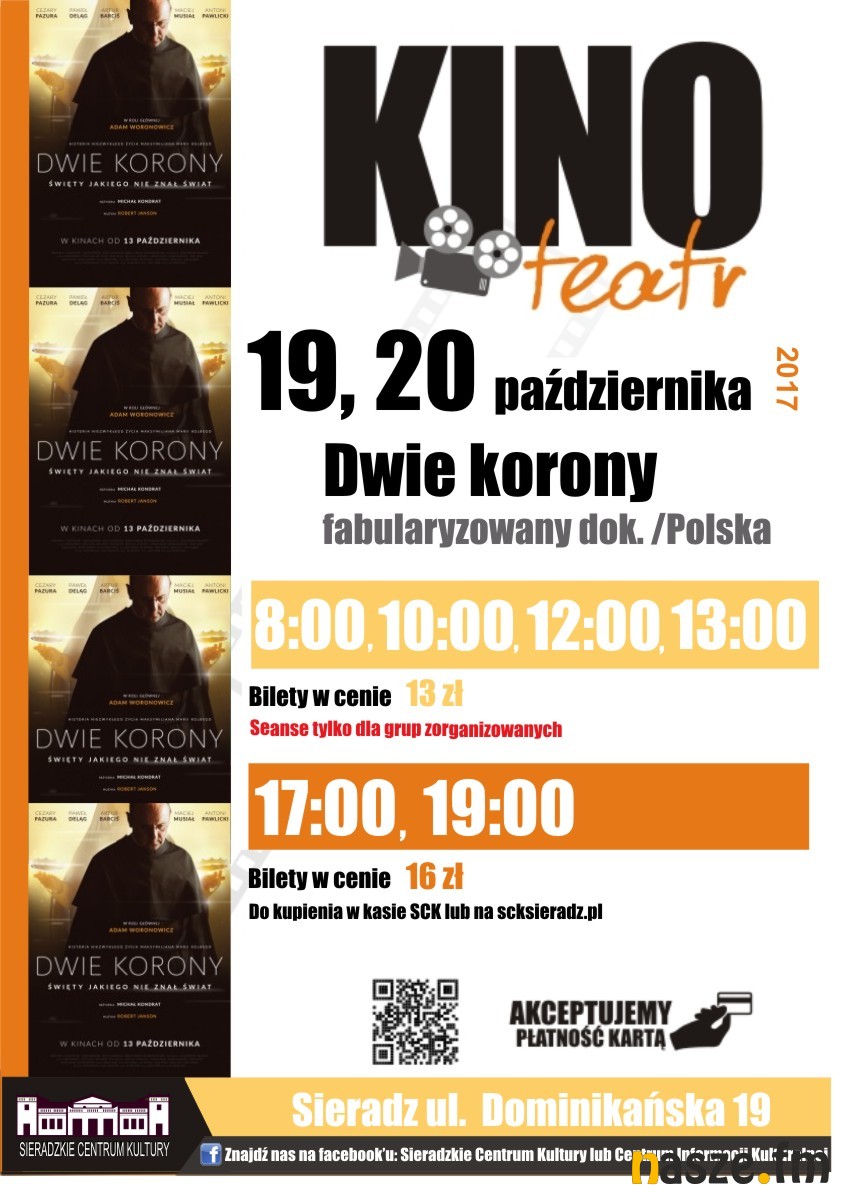 Sieradzkie Centrum Kultury zaprasza na ekranizację filmu "Dwie Korony" ukazującego nieznane dotąd powszechnie fakty z życia Ojca Maksymiliana Kolbe.