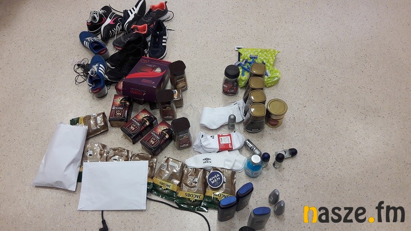 Podczas przeszukania mieszkania funkcjonariusze odnaleźli różnego rodzaju przedmioty pochodzące z kradzieży, m.in. markowe kawy, kosmetyki oraz buty o łącznej wartości ponad 4 tys. zł. Ponadto policjanci zabezpieczyli ponad 10 gramów amfetaminy, blisko 40 gramów marihuany oraz 6 roślin konopni indyjskich, które rosły w doniczkach.