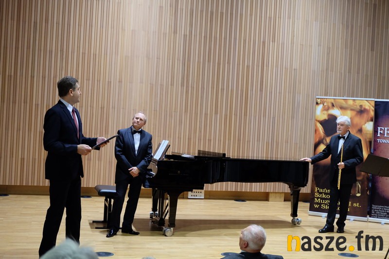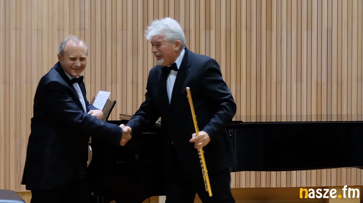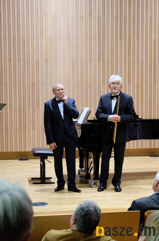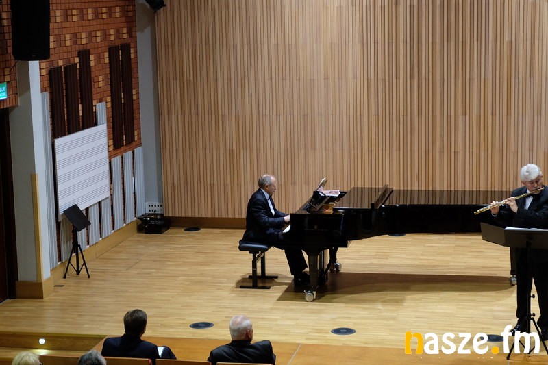 Tego wieczoru na scenie w sali koncertowej na fortepianie zagrał profesor Cezary Sanecki, natomiast na flecie profesor Antoni Wierzbiński. Zebrana publiczność mogła usłyszeć utwory: Mozarta, Schuberta, Czajkowskiego, Pascala i Kreislera.