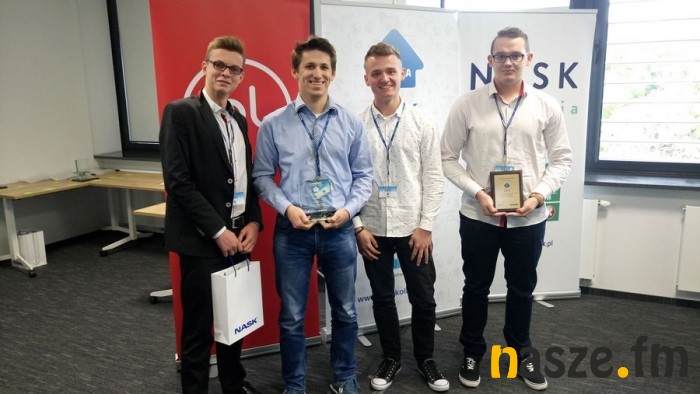 Koordynator projektu Piotr Chojnacki wraz z uczniami Pawłem Kęską, Przemysławem Partyczyńskim, Jakubem Blaźlikiem oraz Danielem Jeziorskim odebrali statuetkę podczas uroczystość, która 6 października odbyła się w siedzibie Naukowej Akademii Sieci Komputerowej w Warszawie.