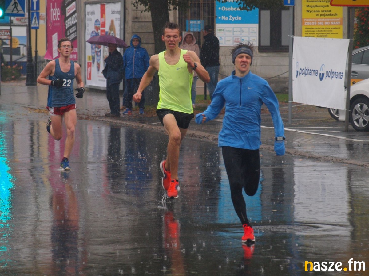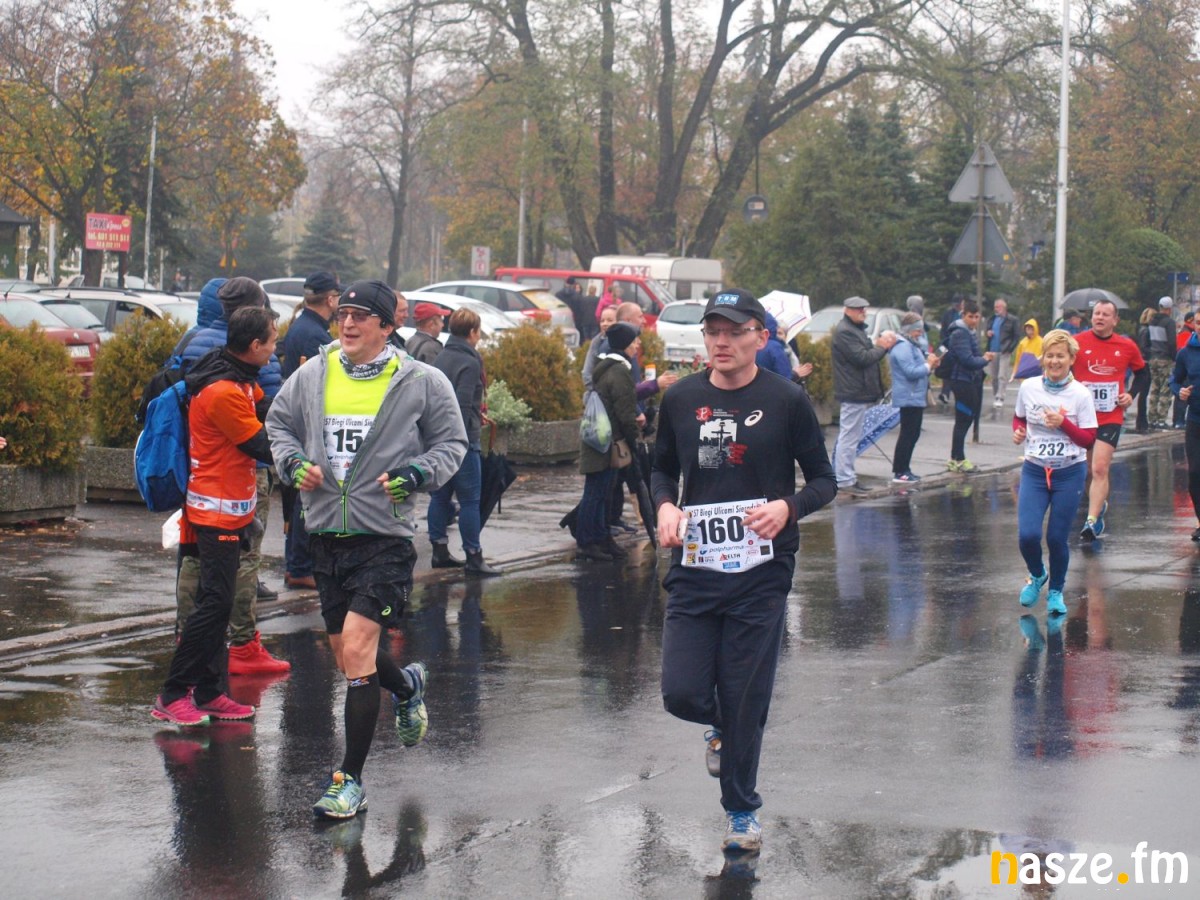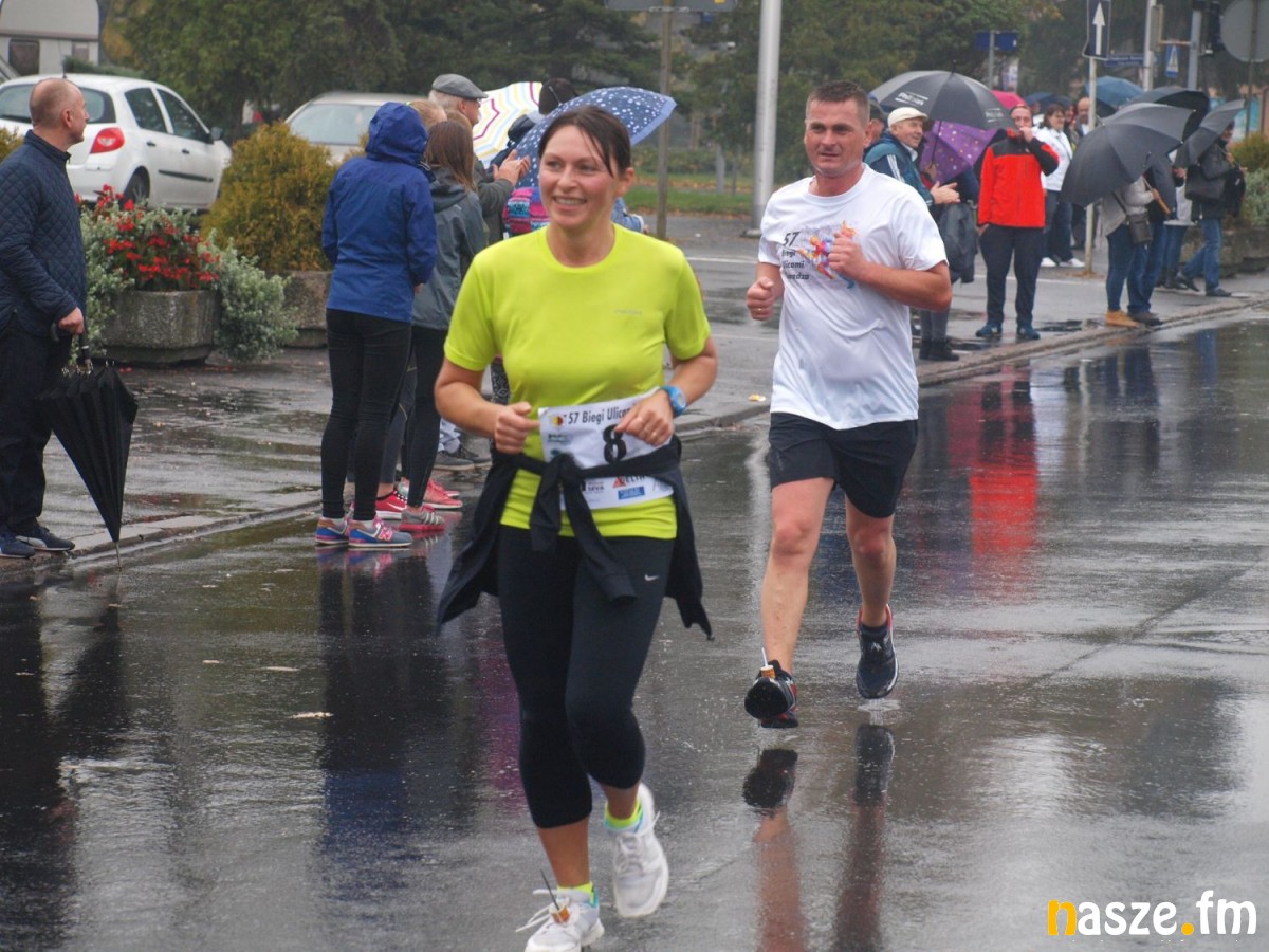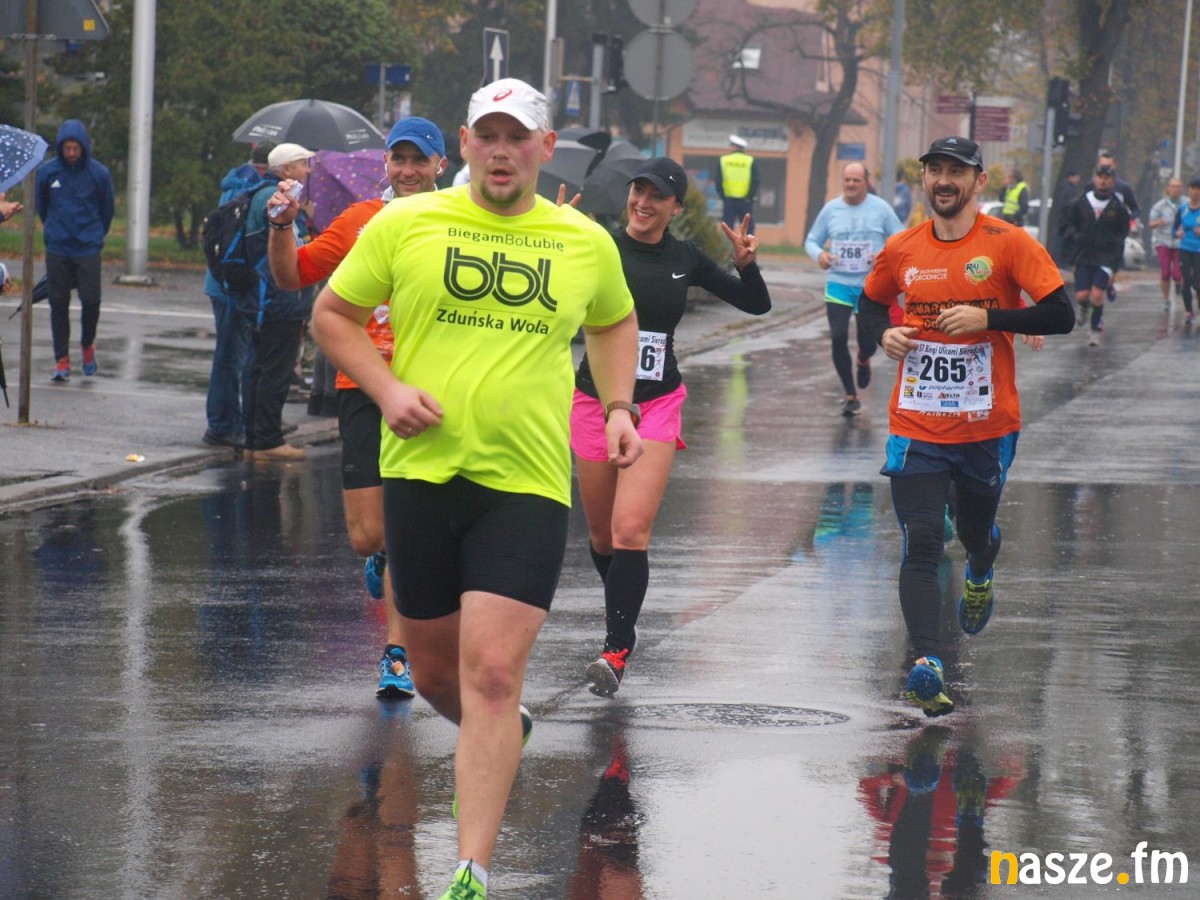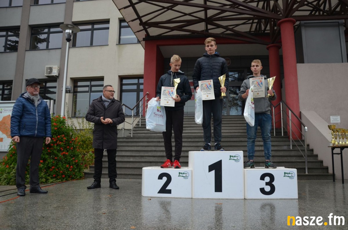 Pogoda nie rozpieszczała uczestników. Deszcz nie mógł jednak odstraszyć prawdziwych miłośników biegania. Jak zwykle największa liczba osób (266) wzięła udział w biegu głównym na dystansie 10 km. Najszybszy na dwóch pięciokilometrowych pętlach był dziś zawodnik RKS Łódź Patryk Stypułkowski, który tym samym poprawił swoje ubiegłoroczne osiągnięcie, przegrał wtedy ze swoim klubowym kolegą Tomaszem Osmulskim. Triumfator 57. edycji Biegów Ulicami Sieradza uzyskał czas 32:35 min, i wyprzedził drugiego na mecie Jędrzeja Hasiurę (także RKS) o blisko półtorej minuty. Jako trzeci linię mety minął wychowanek MULKS MOS Sieradz, obecnie także zawodnik RKS Maciej Nitka. Wśród pań najszybsza była dziś Ewelina Bartocha z Lisowa, która wynikiem 41:51 poprawiła rekord życiowy. Na podium w kategorii kobiet stanęły ponad to: Magdalena Włodarczyk (Wieluń Biega) i Arleta Matysiak (RajSport Active).