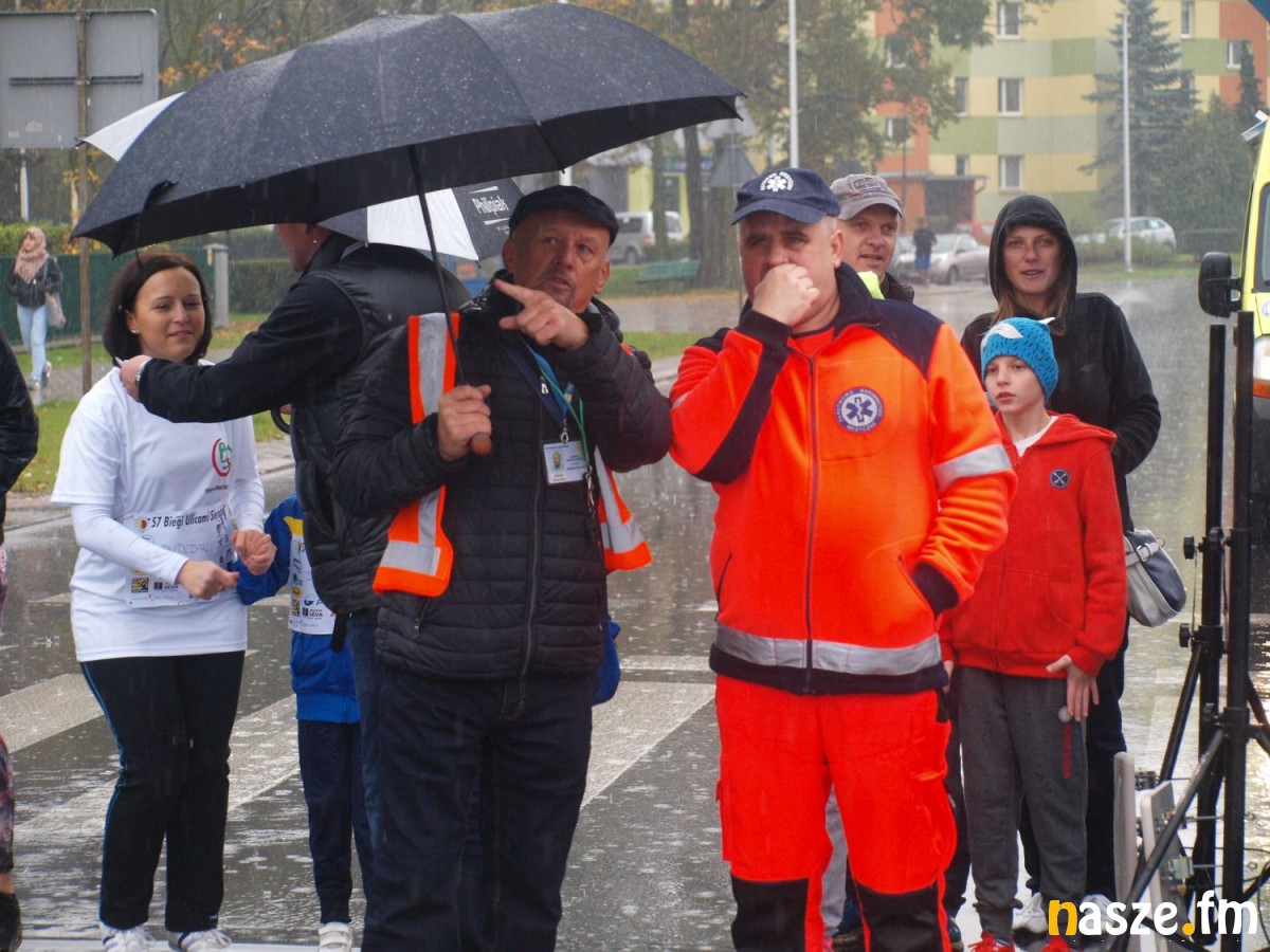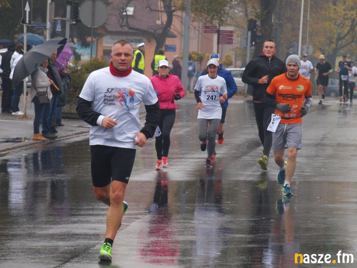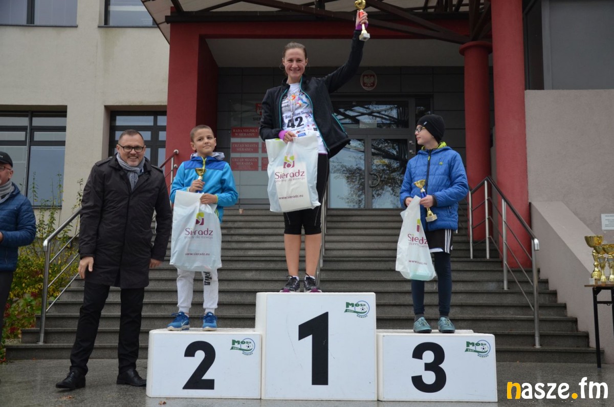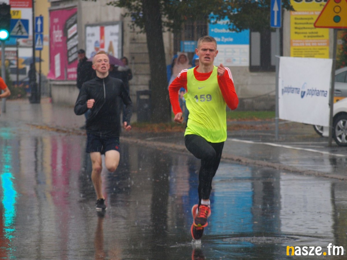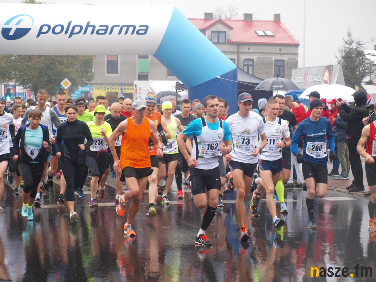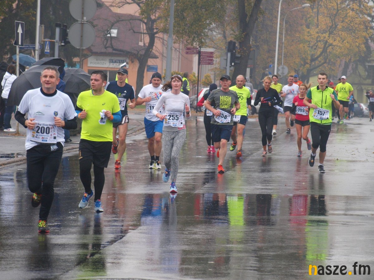 Pogoda nie rozpieszczała uczestników. Deszcz nie mógł jednak odstraszyć prawdziwych miłośników biegania. Jak zwykle największa liczba osób (266) wzięła udział w biegu głównym na dystansie 10 km. Najszybszy na dwóch pięciokilometrowych pętlach był dziś zawodnik RKS Łódź Patryk Stypułkowski, który tym samym poprawił swoje ubiegłoroczne osiągnięcie, przegrał wtedy ze swoim klubowym kolegą Tomaszem Osmulskim. Triumfator 57. edycji Biegów Ulicami Sieradza uzyskał czas 32:35 min, i wyprzedził drugiego na mecie Jędrzeja Hasiurę (także RKS) o blisko półtorej minuty. Jako trzeci linię mety minął wychowanek MULKS MOS Sieradz, obecnie także zawodnik RKS Maciej Nitka. Wśród pań najszybsza była dziś Ewelina Bartocha z Lisowa, która wynikiem 41:51 poprawiła rekord życiowy. Na podium w kategorii kobiet stanęły ponad to: Magdalena Włodarczyk (Wieluń Biega) i Arleta Matysiak (RajSport Active).