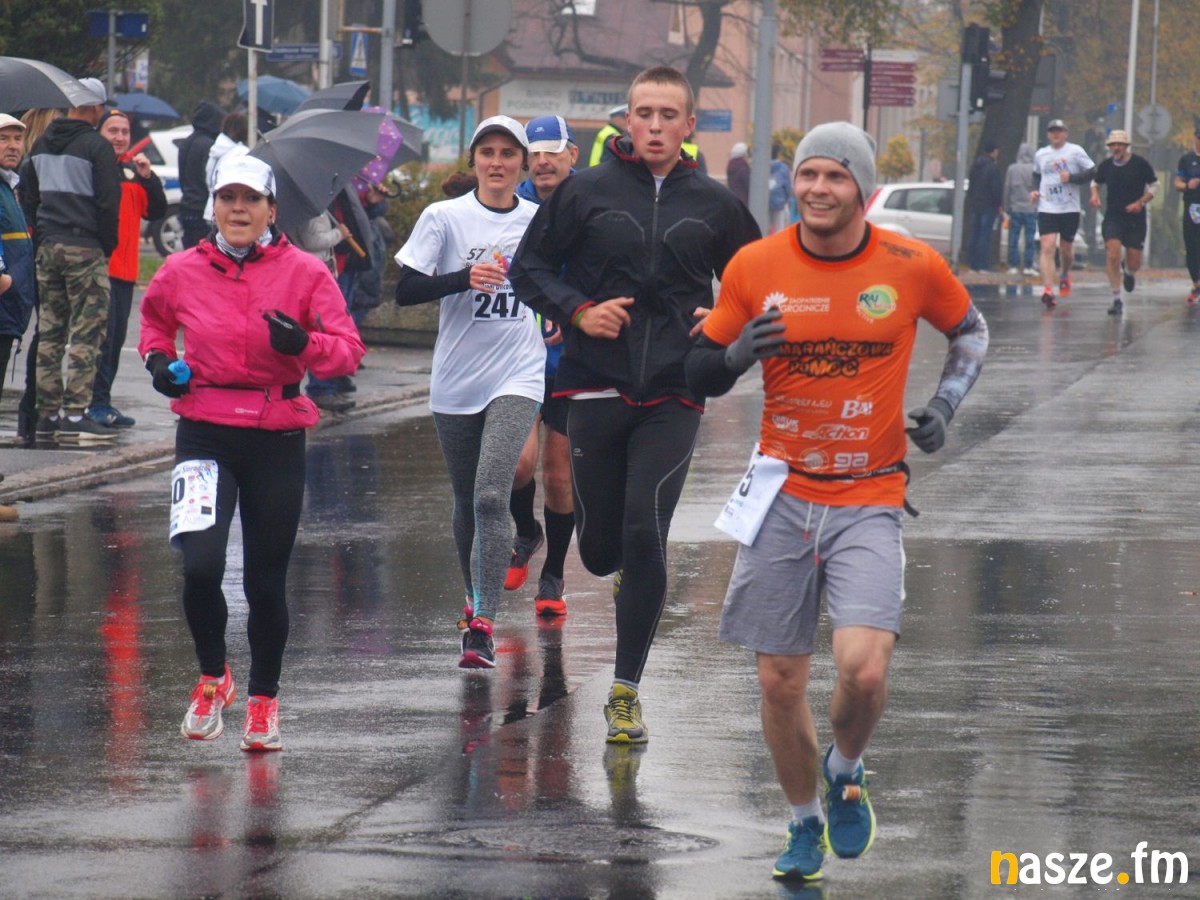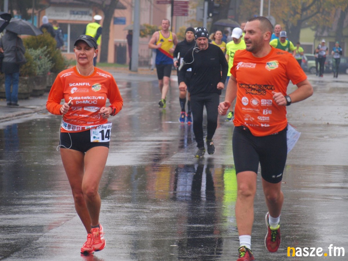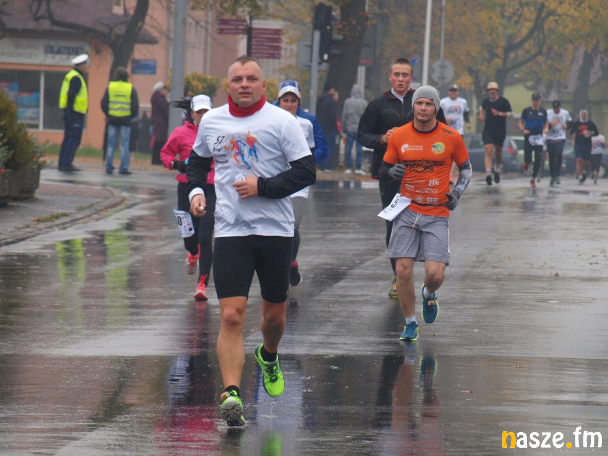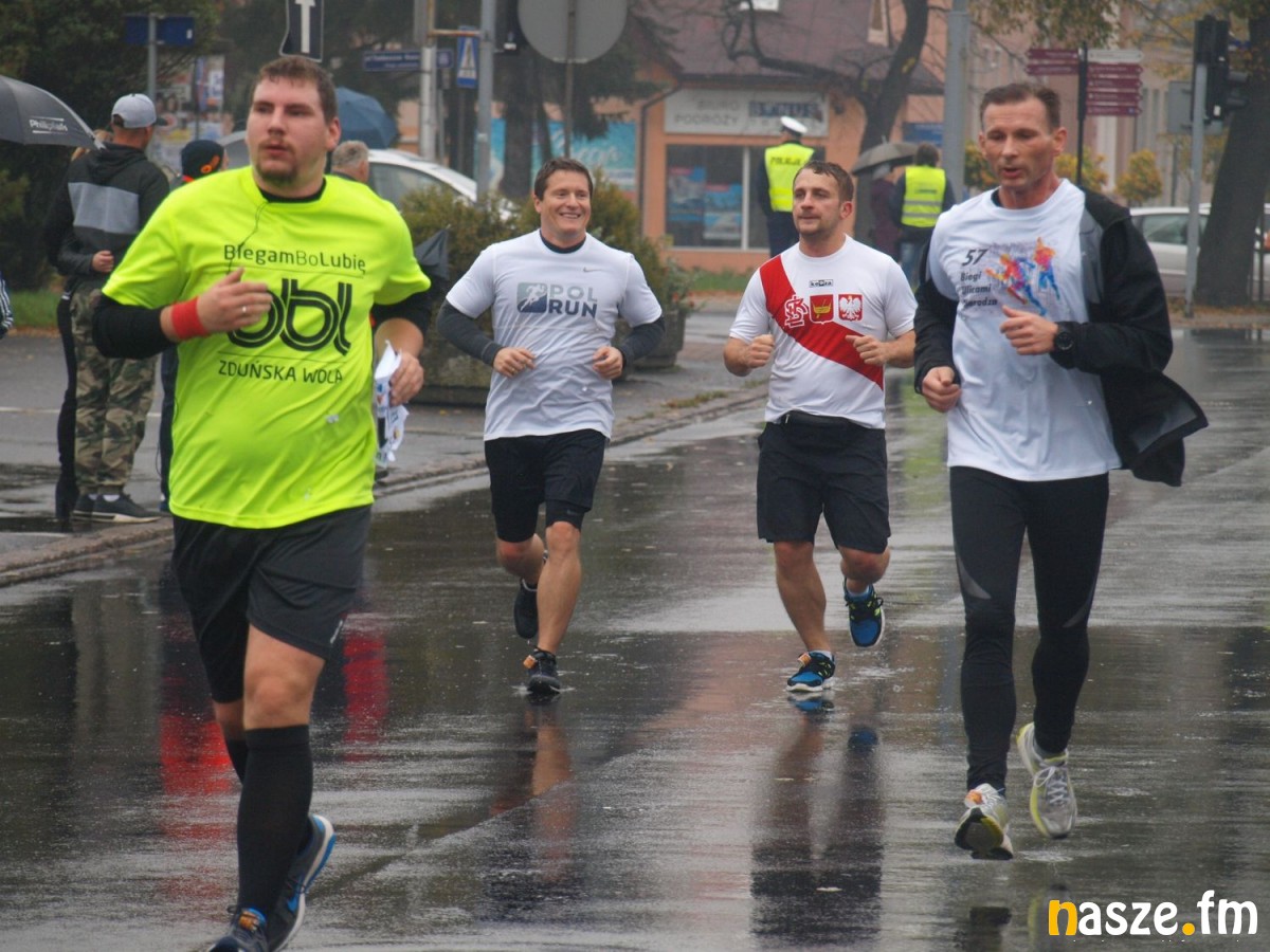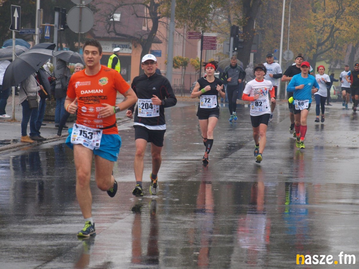 Pogoda nie rozpieszczała uczestników. Deszcz nie mógł jednak odstraszyć prawdziwych miłośników biegania. Jak zwykle największa liczba osób (266) wzięła udział w biegu głównym na dystansie 10 km. Najszybszy na dwóch pięciokilometrowych pętlach był dziś zawodnik RKS Łódź Patryk Stypułkowski, który tym samym poprawił swoje ubiegłoroczne osiągnięcie, przegrał wtedy ze swoim klubowym kolegą Tomaszem Osmulskim. Triumfator 57. edycji Biegów Ulicami Sieradza uzyskał czas 32:35 min, i wyprzedził drugiego na mecie Jędrzeja Hasiurę (także RKS) o blisko półtorej minuty. Jako trzeci linię mety minął wychowanek MULKS MOS Sieradz, obecnie także zawodnik RKS Maciej Nitka. Wśród pań najszybsza była dziś Ewelina Bartocha z Lisowa, która wynikiem 41:51 poprawiła rekord życiowy. Na podium w kategorii kobiet stanęły ponad to: Magdalena Włodarczyk (Wieluń Biega) i Arleta Matysiak (RajSport Active).
