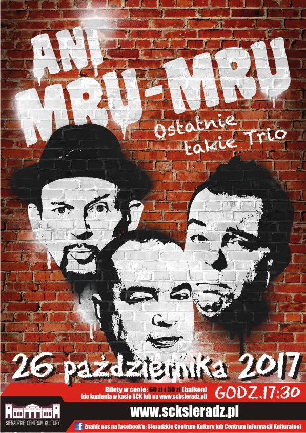 W czwartek (26 października) w Teatrze Miejskim wystąpi Kabaret Ani Mru Mru. Artyści zaprezentują program "Ostatnie takie trio". Ich występ rozpocznie się o godz. 17:30.