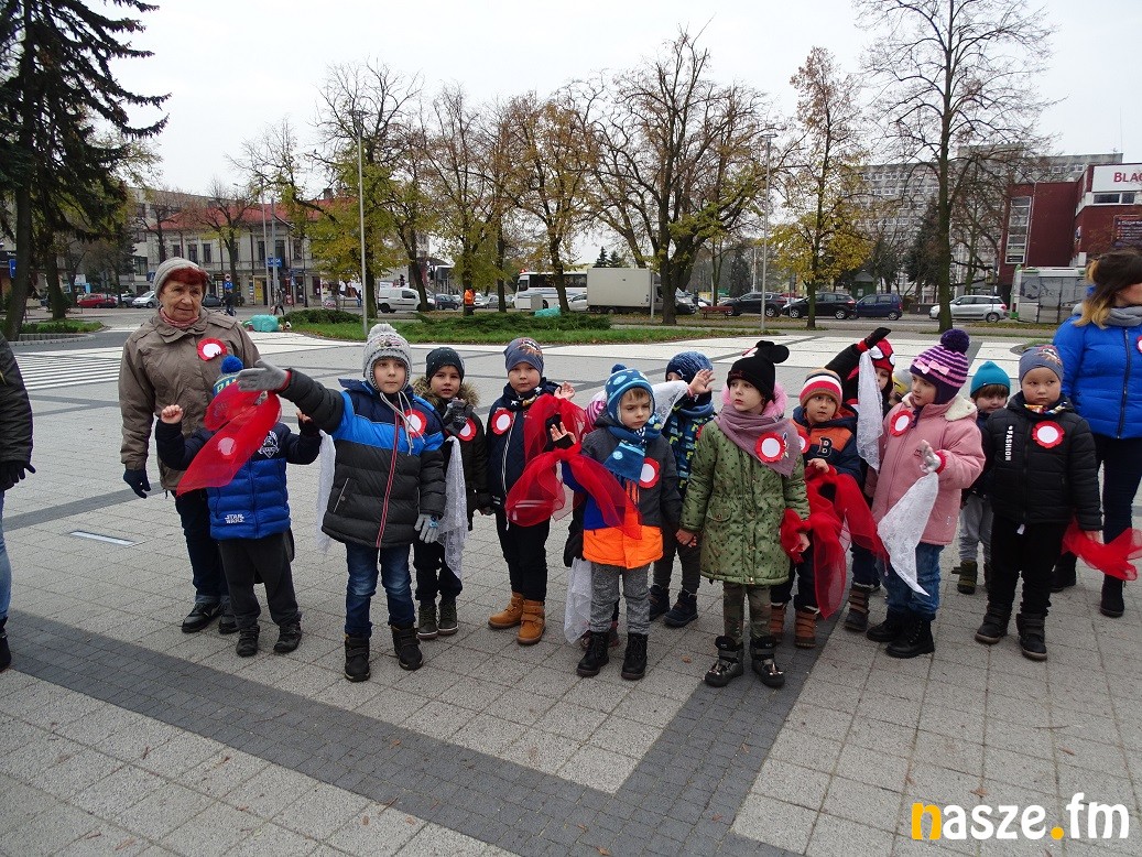 Około setka dzieci z Przedszkola nr 6 przemaszerowała z ul. Zajęczej na plac Piłsudskiego. Trzymając w rękach chorągiewki z flagą Polski prezentowały postawy patriotyczne związane z dniem 11 listopada.