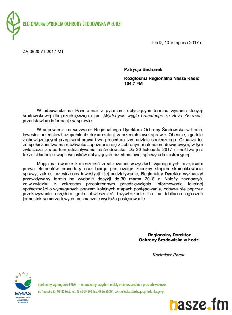 W tej sprawie skontaktowaliśmy się z rzecznikiem RDOŚ w Łodzi. Otrzymaliśmy odpowiedź, którą publikujemy poniżej: