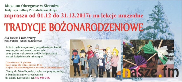 Muzeum Okręgowe w Sieradzu zaprasza od 1 do 21 grudnia na lekcje muzealne „Tradycje Bożonarodzeniowe” dla dzieci i młodzieży z przedszkoli i szkół podstawowych.