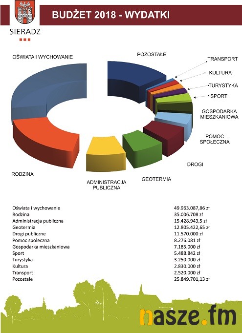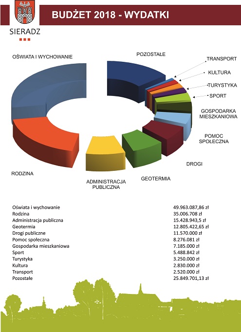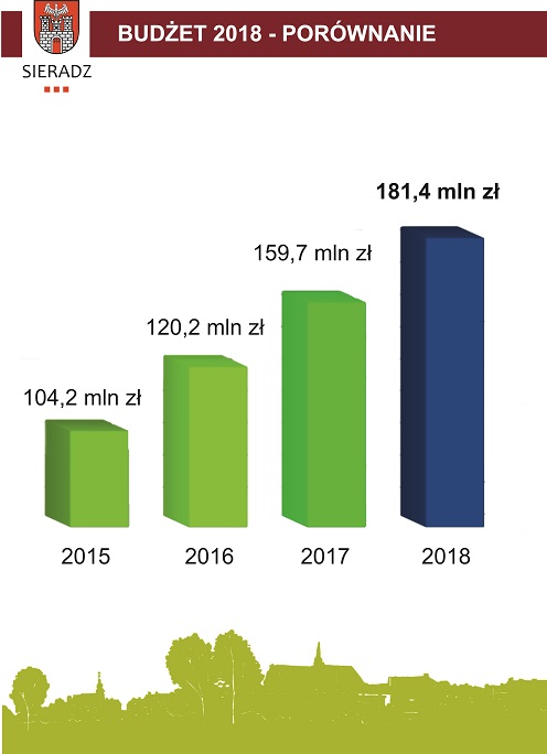 Przyszłoroczne dochody miasta Sieradza przewiduje się na 172 mln zl. Natomiast wydatki to łączna kwota 181,4 mln zł. Najwięcej funduszy miasto Sieradz planuje przeznaczyć na oświatę i wychowanie - prawie 50 mln zł.