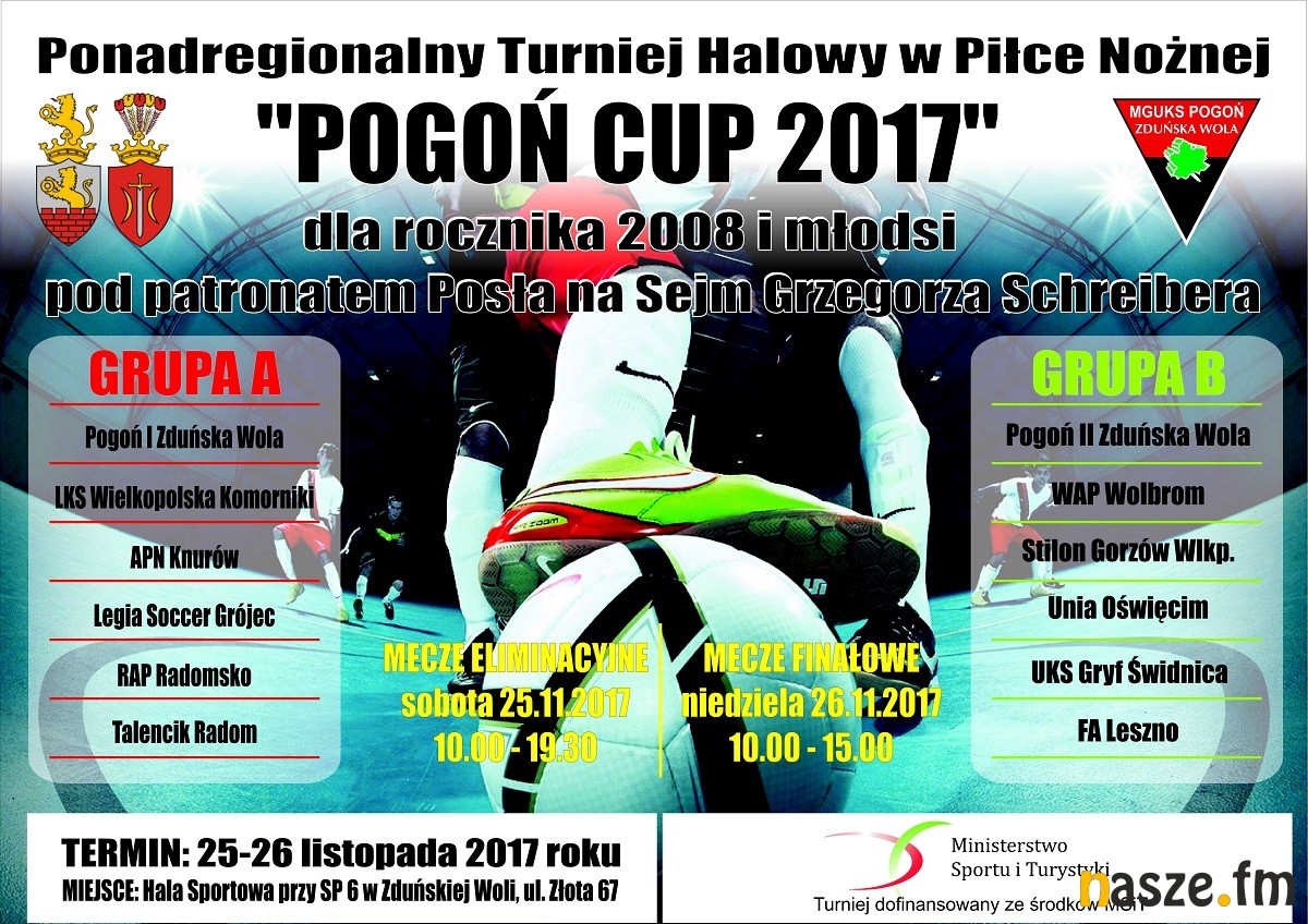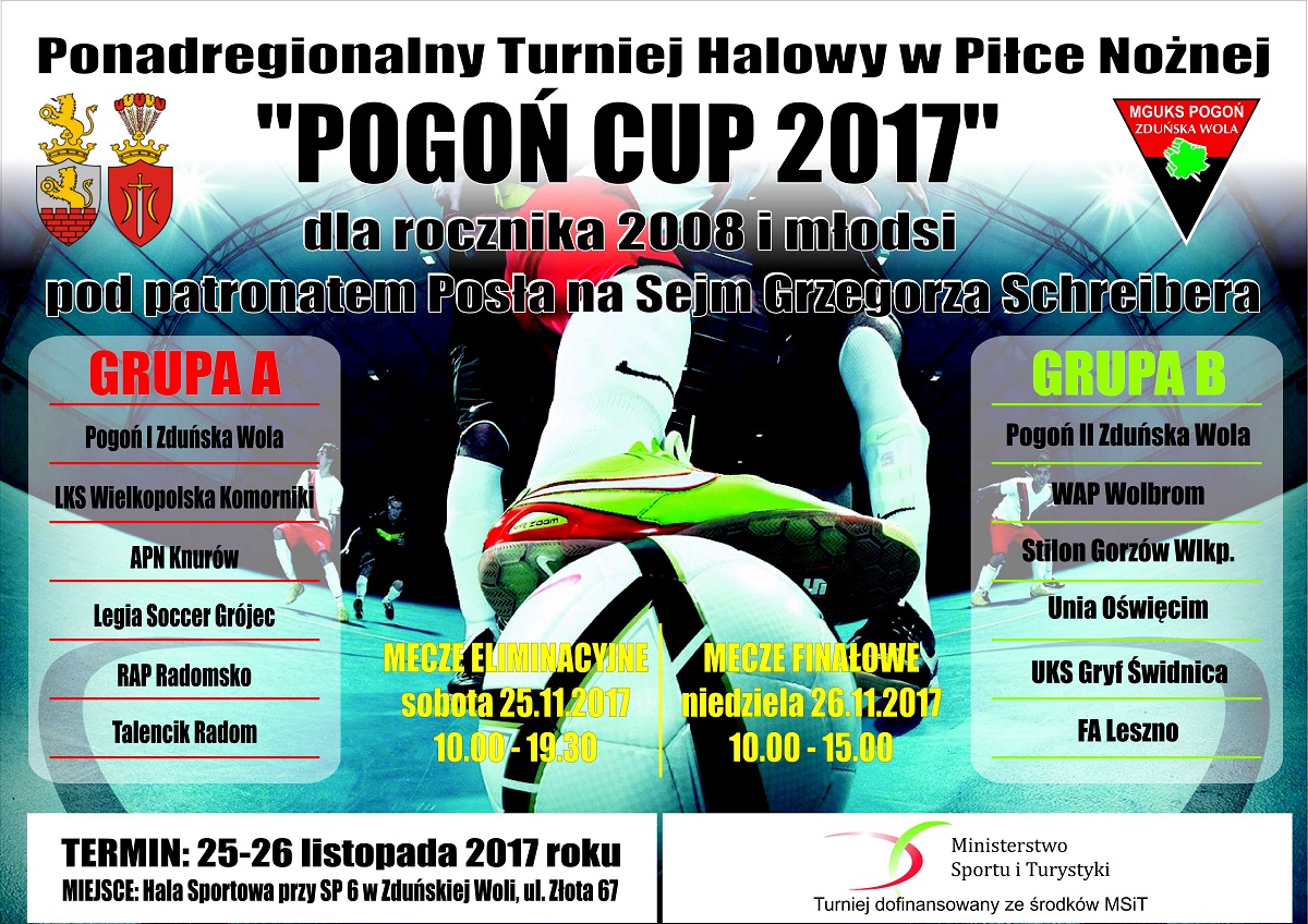 Turniej halowy POGOŃ CUP 2017 (sobota - niedziela, hala Szkoły Podstawowej nr 6 w Zduńskiej Woli prz ulicy Złotej 67)