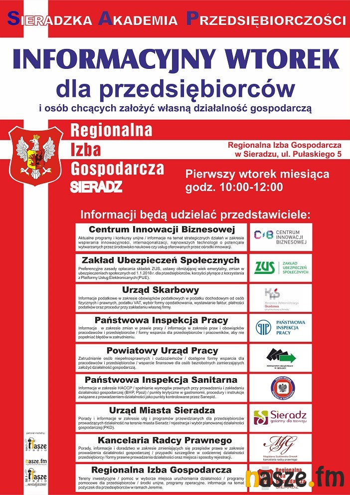 W najbliższy wtorek odbędzie się kolejne bezpłatne spotkanie informacyjnych dla przedsiębiorców i osób chcących założyć własną działalność gospodarczą. W jednym miejscu spotka się dziewięciu przedstawicieli instytucji działających na terenie powiatu sieradzkiego, którzy będą udzielać informacji w zakresie prowadzonej przez instytucję działalności.