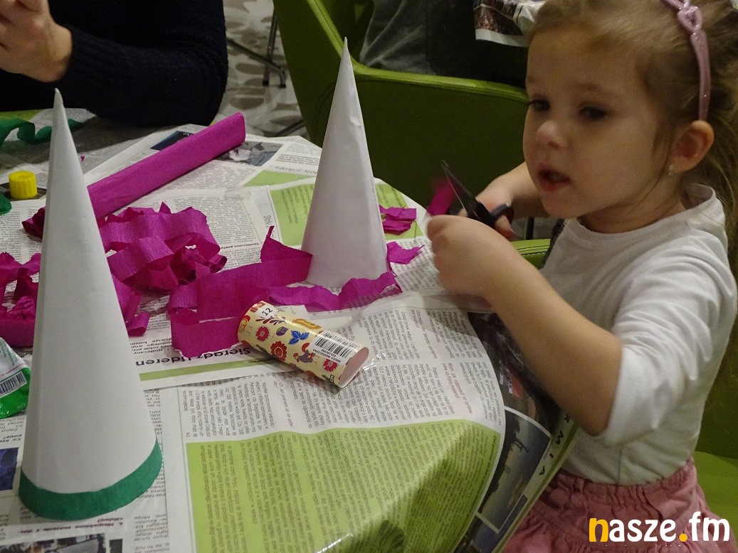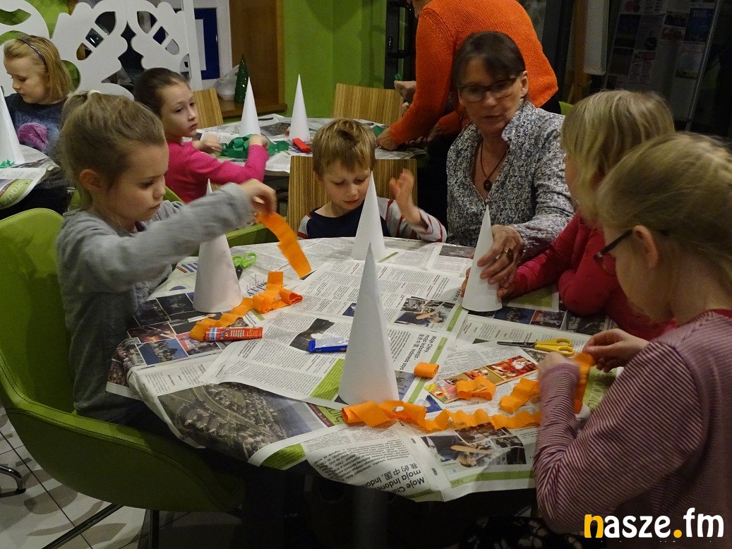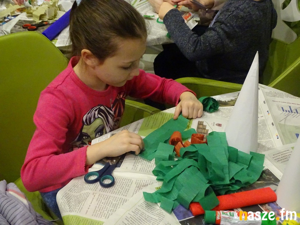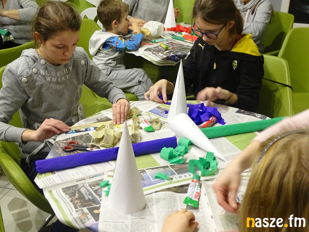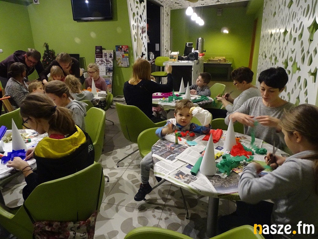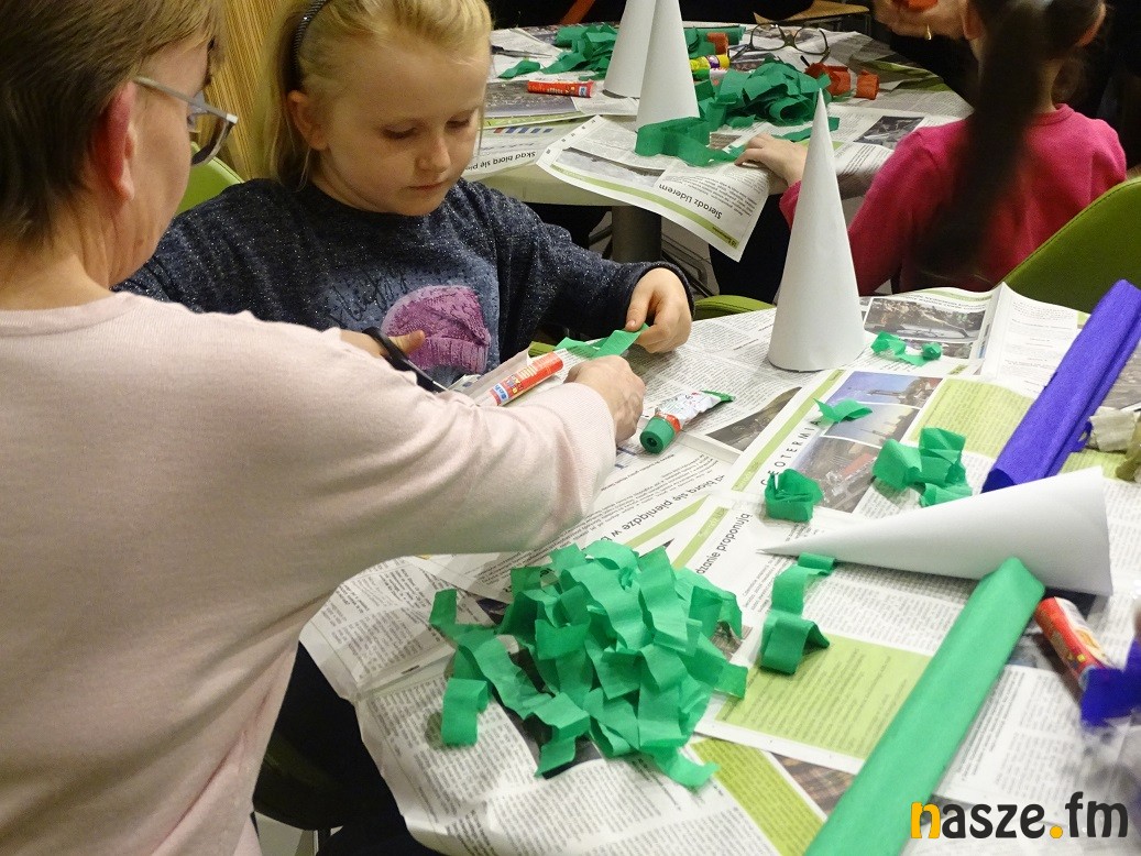 W warsztatach wzięły udział dzieci od 3 do 12 lat. Najmłodszym towarzyszyli opiekunowie, którzy również wykonywali swoje choinki.
