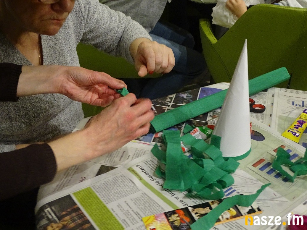 - Dzisiaj świąteczny klimat warsztatów. Takie choinki z bibuły, z kwiatów są bardzo urokliwe. Cieszymy się, że uczestnicy lubią takie rzeczy robić, dzielimy się tymi umiejętnościami z chętnymi osobami z naszej społeczności. Jest spore zainteresowanie naszymi warsztatami, tym bardziej jesteśmy bardzo zadowolone. - mówi Joanna Zawiasa z grupy Szydełkowe Kwadraty