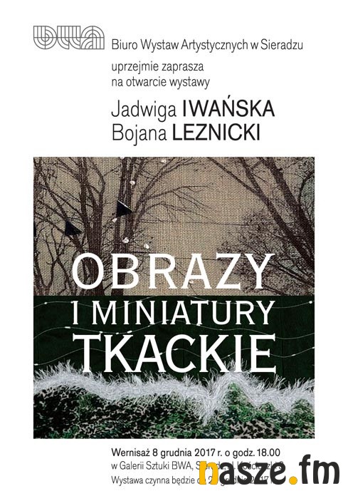 Biuro Wystaw artystycznych w Sieradzu zaprasza na godz. 18:00 na otwarcie wystawy dwóch artystek. Od dziś ( piątek 8 grudnia) w galerii przy ul. Kościuszki 3 będą prezentowane prace Jadwigi Iwańskiej i Bojany Leznickiej.