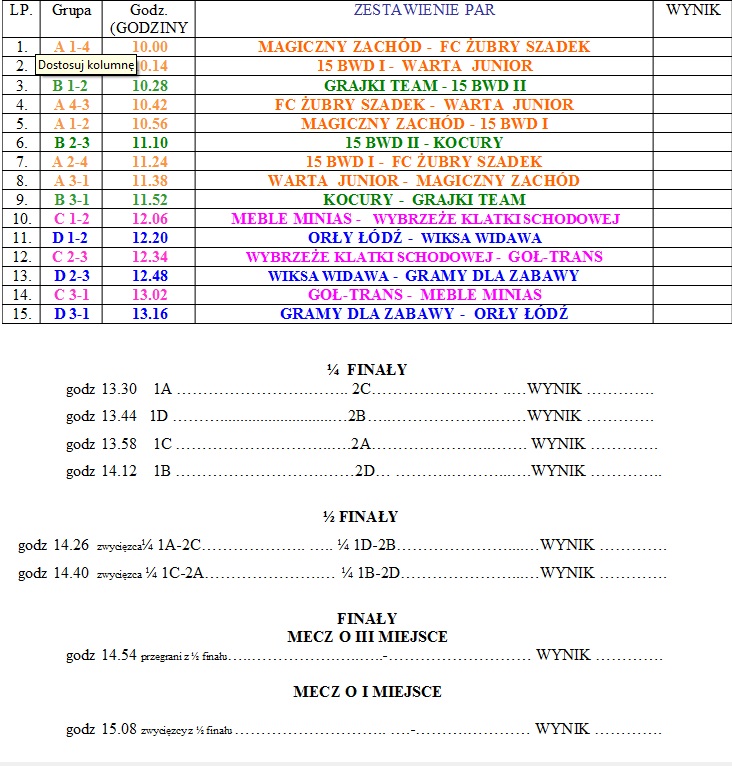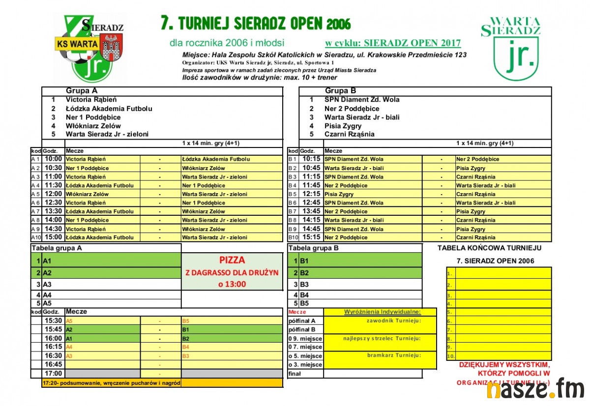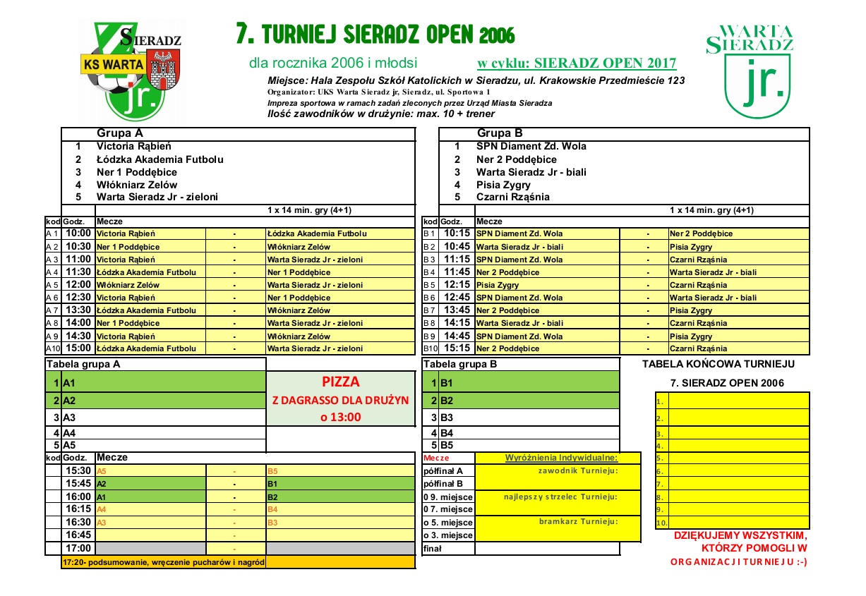 (sobota, 9,12, hala SP nr 6 w Zduńskiej Woli, ul. Złota 67, 9:30)