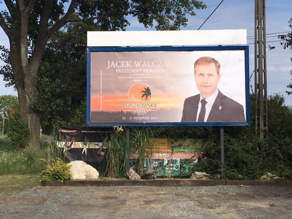 Jak się okazuje autorzy życzeń nie mówią o kampanii. A może rozpoczęła się ona już latem minionego roku? Wtedy to przy wjeździe do Sieradza można było zobaczyć bilbord, na którym Jacek Walczak, przedstawiany jako prezydent Sieradza (w nawiasie małą czcionką dopisek w jakich latach), zaprasza na Błaszkowskie Noce.