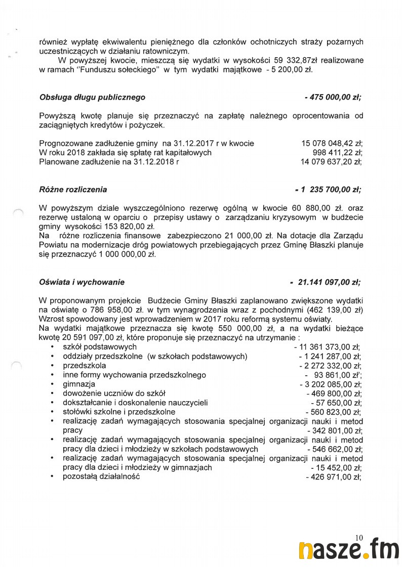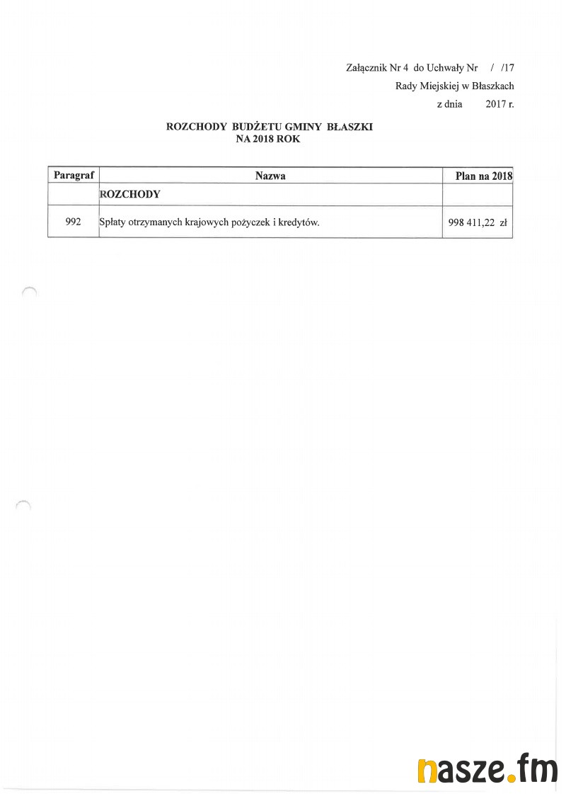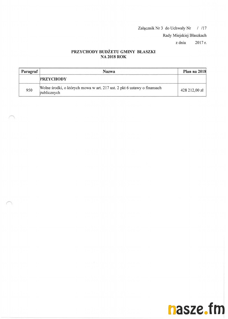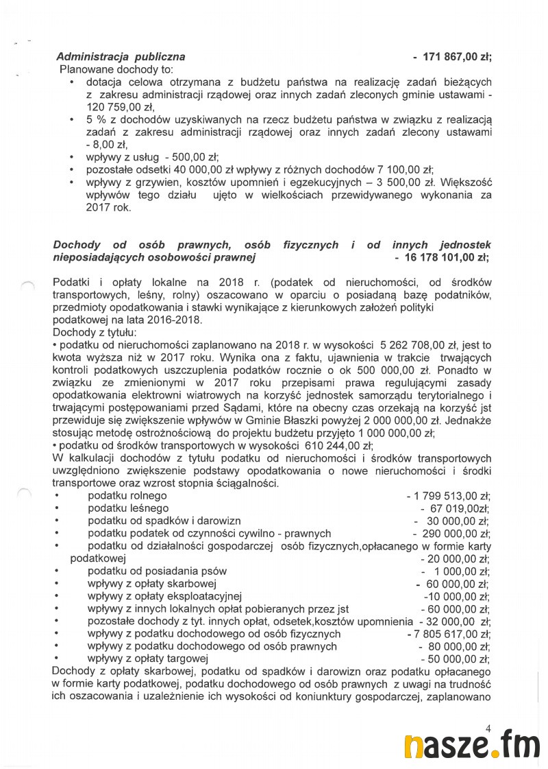 Podczas wczorajszej sesji Rada Miejska w Błaszkach przyjęła uchwałę budżetową na 2018 rok. To ten sam dokument, na który nie było zgody w grudniu, na poprzedniej sesji. Radni odrzucili też pomysł własnych podwyżek.