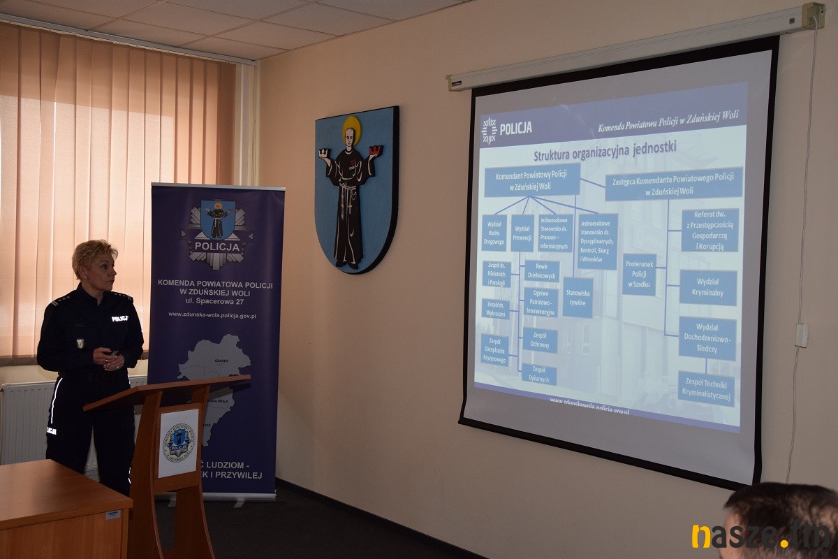 Po przywitaniu gości Komendant Powiatowy Policji w Policji w Zduńskiej Woli insp. Małgorzata Mączyńska wraz ze swoim zastępcą mł. insp. Jarosławem Tokarskim przedstawili wyniki pracy funkcjonariuszy w minionym roku.