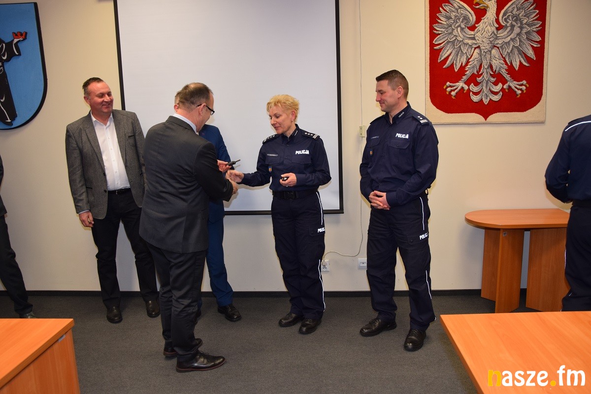 Na zakończenie odprawy na ręce Komendanta Powiatowego Policji w Zduńskiej Woli zostały przekazane kluczyki do dwóch nieoznakowanych radiowozów, które zostały zakupione dzięki wsparciu finansowemu z budżetów lokalnych samorządów. Na ten cel Starostwo Powiatowe w Zduńskiej Woli, Urząd Miasta Zduńska Wola, Urząd Gminy i Miasta Szadek, Urząd Gminy Zduńska Wola oraz Urząd Gminny Zapolice przekazały łącznie 56,5 tys. zł. Pozostała część zakupu samochodów została sfinansowana ze środków Komendy Głównej Policji.