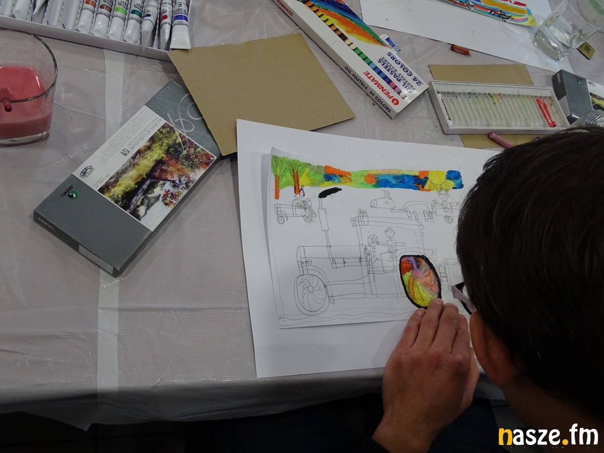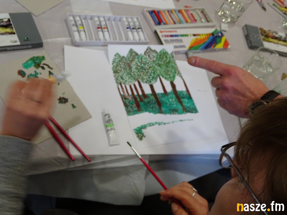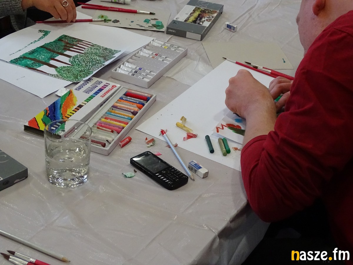 - Kiedy ktokolwiek z nas, zawodowiec czy amator, zaczyna pracować, malować, zawsze opisuje świat. Na swój własny sposób za każdym razem zawsze malujemy swój świat, to co nas otacza. Dzisiaj wykorzystujemy pastele olejne i akryle. Moi podopieczni dzisiaj mają dowolność, mogą łączyć te techniki jak jak tylko chcą.
