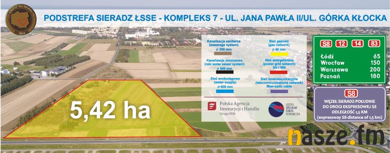 W dniu 2 lutego 2018 roku został rozstrzygnięty przetarg łączny mający na celu wyłonienie przedsiębiorcy, który uzyska zezwolenie na prowadzenie działalności gospodarczej na terenie ŁSSE w Podstrefie Sieradz, Kompleks 7 oraz nabędzie niezabudowaną nieruchomość gruntową, stanowiącą własność gminy Miasto Sieradz, położoną w Sieradzu, przy ul. Górka Kłocka (powiat sieradzki, województwo łódzkie), oznaczoną jako działki gruntu o numerach 260/4, 261/2, 262/2, 263/2, 264/4, 265/2, 266/2 i 267/2 o powierzchni łącznej 5,4184 ha.