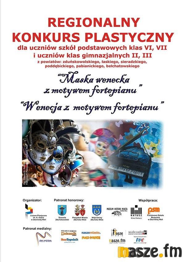 Regionalny Konkurs Plastyczny o dwóch tytułach "Maska wenecka z motywem fortepianu" i "Wenecja z motywem fortepianu", skierowany był do uczniów kl. VI i VII szkół podstawowych i uczniów klas gimnazjalnych: II, III szkół powiatów: zduńskowolskiego, łaskiego, pabianickiego, sieradzkiego, bełchatowskiego, poddębickiego.