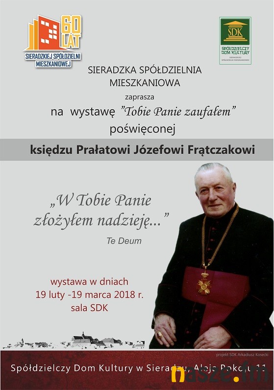 Sieradzka Spółdzielnia Mieszkaniowa i Spółdzielczy Dom Kultury w Sieradzu zapraszają na zwiedzanie wystawy "Tobie Panie zaufałem", poświęconej księdzu Prałatowi Józefowi Frątczakowi. Wystawę można oglądać do 19 marca.