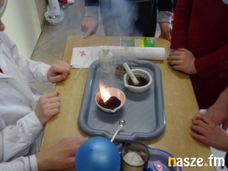 Ponadto uczniowie klasy VII prezentują młodszym kolegom doświadczenia fizyczno-chemiczne, dzięki którym w przystępny i przyjemny sposób poznają i zrozumieją oni tajemniczy świat nauki i przyrody.
