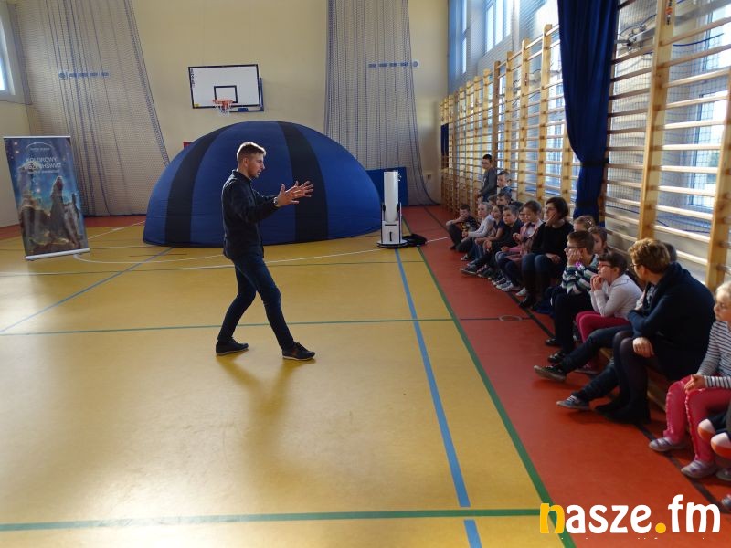 Ogromny przenośny namiot sferyczny został rozłożony w sali gimnastycznej i dostarcza wielu „kosmicznych wrażeń”. Dzięki niemu uczniowie mogą poznać wszechświat w pigułce i wyruszyć w fascynującą podróż w nieznane zakątki kosmosu. Mobilne planetarium umożliwia zobaczenie różnorodnych zjawisk astronomicznych i wzbogacenie o nich wiedzy.