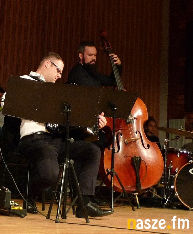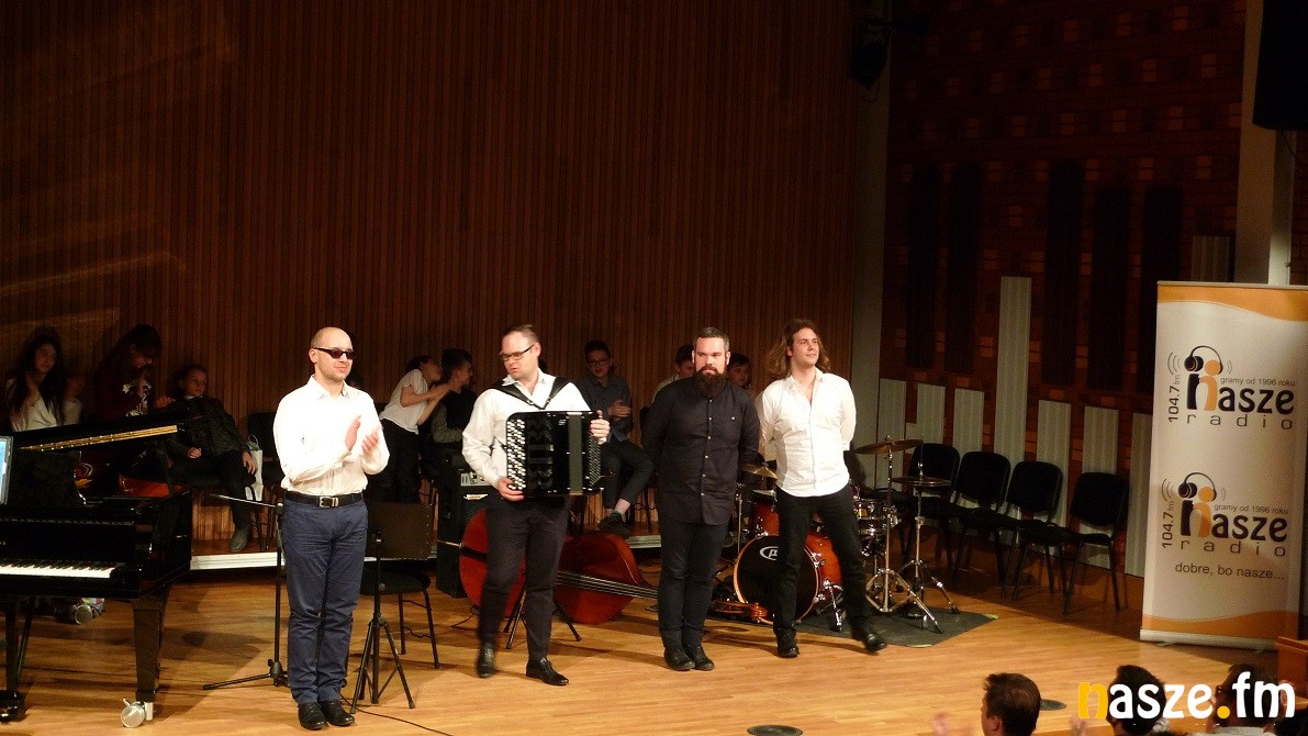 Akordeonista okazał się nie jedynym wirtuozem, który zagrał dziś w Sieradzu. W zespole Almost Jazz Group grają też: asystent Jana A.P. Kaczmarka ( kompozytor muzyki filmowej nagrodzony Oskarem za muzykę do "Marzyciela", wydający na dniach solową płytę i współpracujący z Marcinem Świetlickim kontrabasista, i pianista komponujący dla teatrów w całej Polsce.