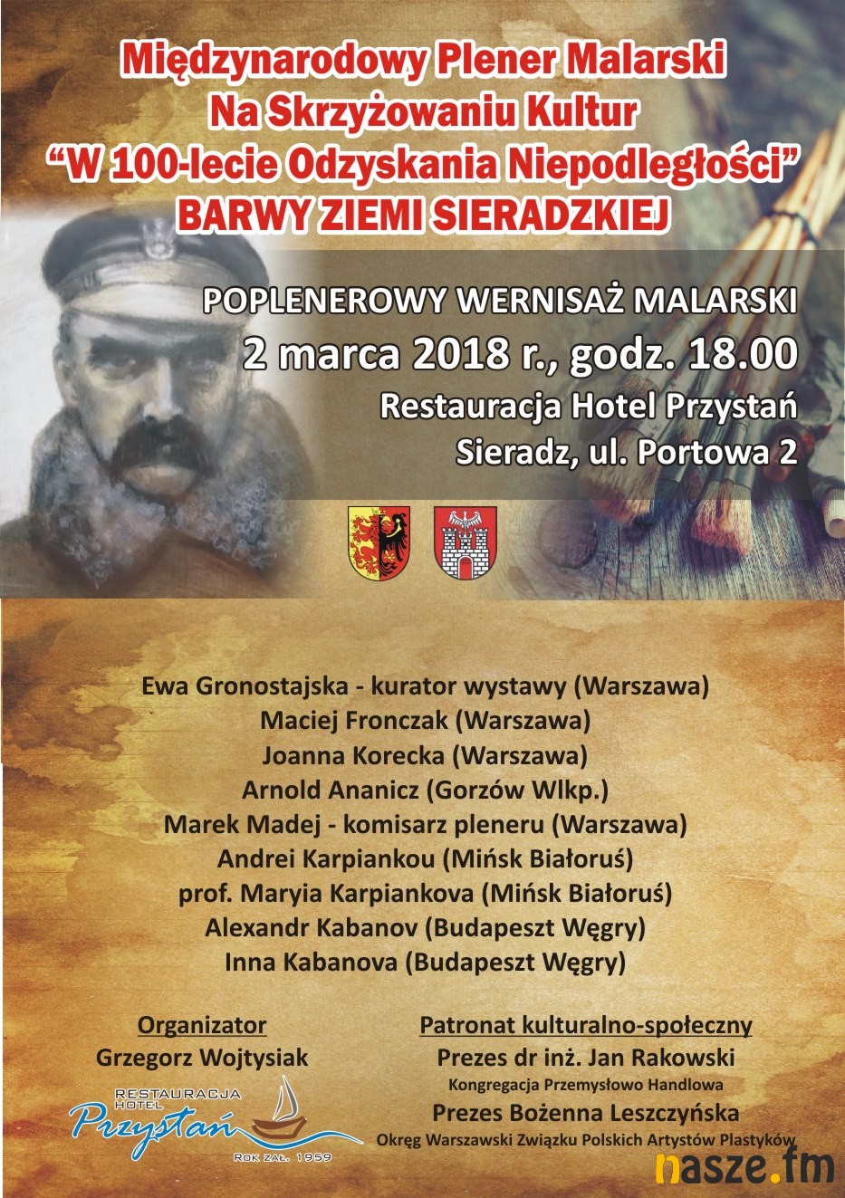 Jutro w restauracji Przystań w Sieradzu odbędzie się poplenerowy wernisaż malarski zorganizowany z okazji 100-lecia odzyskania niepodległości przez Polskę. Początek o godzinie 18.