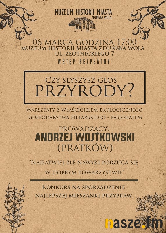 Takie hasło przyświeca warsztatom zielarskim, które jutro (06.03) odbędą się w Muzeum Historii Miasta Zduńska Wola. Poprowadzi je Andrzej Wojtkowski z Pratkowa, który jest właścicielem ekologicznego gospodarstwa zielarskiego.