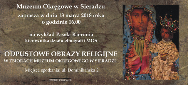 Muzeum Okręgowe w Sieradzu zaprasza jutro na wykład Pawła Kieronia zatytułowany "Odpustowe obrazy religijne w zbiorach Muzeum Okręgowego w Sieradzu" . W tym miesiącu będziemy też mogli podziwiać kamery i aparaty fotograficzne, wziąć udział w lekcjach wielkanocnych czy obejrzeć wystawę związaną ze 100leciem odzyskania przez Polskę państwowości. Z mieszkańcami miasta w muzeum spotka się też Rzecznik Praw Obywatelskich.
