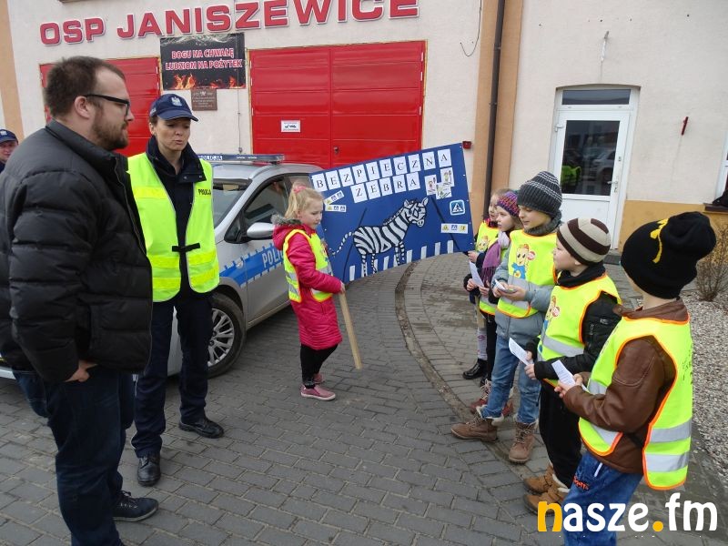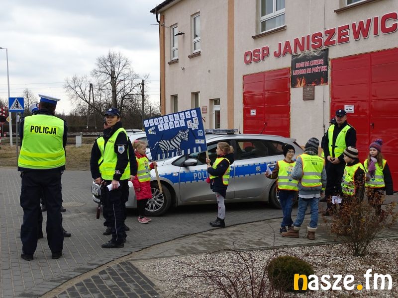 Uczniowie Szkoły Podstawowej w Janiszewicach przy pomocy rysunkowej „Zebry” przyciągali uwagę mieszkańców, którym jednocześnie wręczali specjalne ulotki informacyjne. Policjanci z kolei zachęcali pieszych oraz cyklistów do noszenia kamizelek i elementów odblaskowych, zwłaszcza gdy zapada zmierzch.