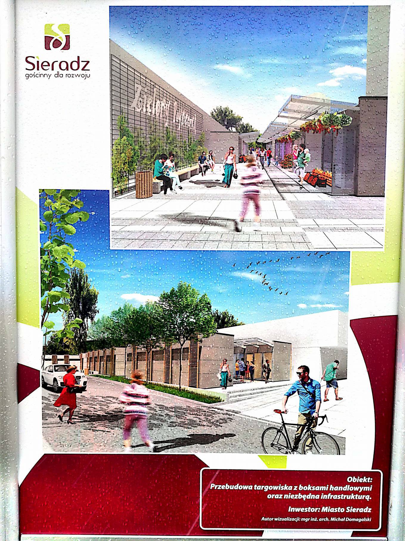 Targowisko „Mój Rynek" (tak będzie nazywał się po modernizacji) ma być utwardzone, oświetlone, przyłączone do sieci wodociągowej, kanalizacyjnej i elektroenergetycznej. Zostanie wyposażone w odpływ wody deszczowej; ma do tego posiadać miejsca parkingowe, budynki administracyjne oraz sanitarno-higieniczne i punkty gromadzenia odpadów. Zgodnie z planami Urzędu Miasta Sieradza „Mój Rynek" będzie czynny od poniedziałku do soboty w godzinach 6 - 20. W projekcie przedstawionym przez Przedsiębiorstwo Komunalne, które ma zarządzać targowiskiem, powierzchnia handlowa składa się z części zadaszonej i niezadaszonej. W części zadaszonej znajdują się 54 pawilony handlowe wraz z ekspozycją. W części niezadaszonej jest 71 miejsc handlowych. Projekt zakłada wyposażenie targowiska w miejsca i konstrukcje do ekspozycji owoców i warzyw. Cześć zadaszona jest zaprojektowana tak, by na targowisko mógł wjechać samochód dostawczy z towarem.