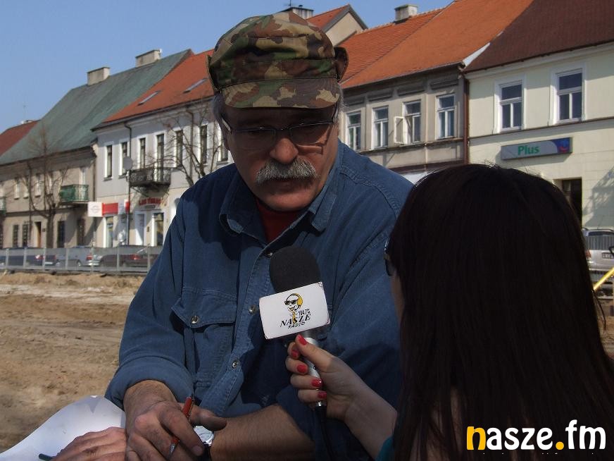 Dziś rano z niepokojem odkryliśmy, że prace na sieradzkim Rynku wyraźnie zwolniły. Tylko jedna osoba była zdecydowanie ruchliwa. Okazało się, że to Marek Urbański - archeolog.