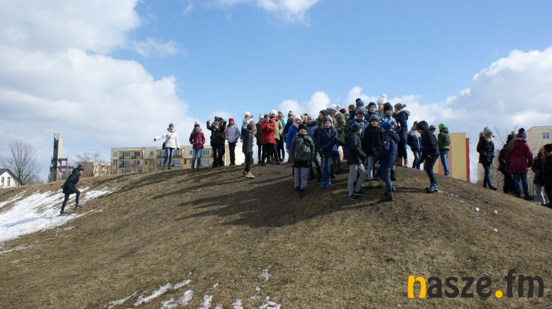 Wszystkie klasy, od najmłodszej do najstarszej, spotkały się na szczycie "podobno" magicznej górki, skąd donośnie niesie się głos. Co sił w płucach i głosu w gardłach wesoło zaśpiewano piosenki mające obudzić Wiosnę z zimowego odrętwienia.