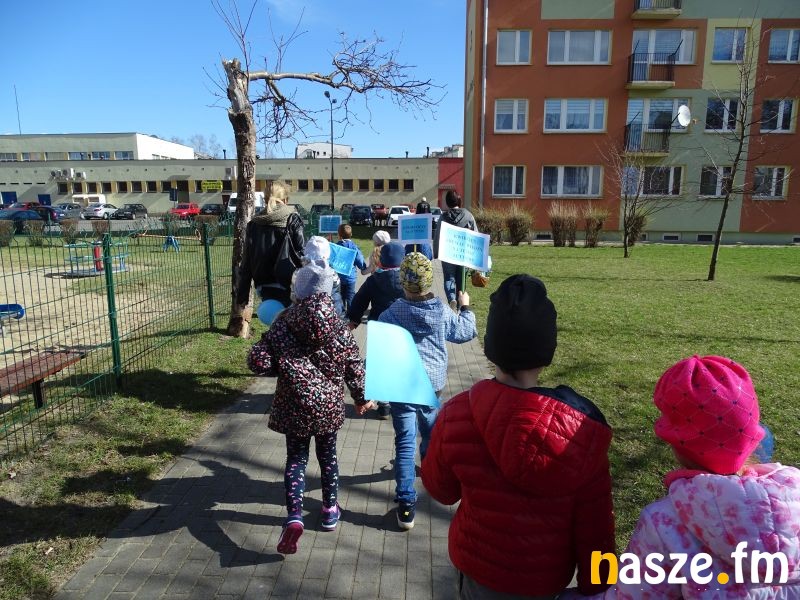 W tym roku po raz kolejny przedszkolaki wzięły udział w zajęciach, podczas których wychowawcy przybliżyli im istotę autyzmu. Rozmawiali o tym na czym polega to zaburzenie, a także o tym jak zachowują się osoby z autyzmem. Dziś z plakatami, balonikami i kwiatami w niebieskim kolorze wyruszyli na spacer ulicami Sieradza, żeby solidaryzować się z osobami dotkniętymi tym zaburzeniem. Odwiedzili sąsiednie przedszkola, Urząd Miasta Sieradza czy redakcję Naszego Radia.