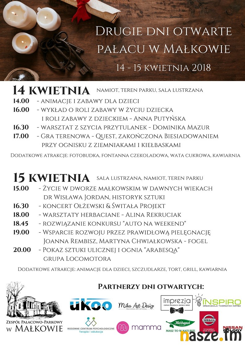 Program dni otwartych w pałacu w Małkowie znajdziecie na plakacie poniżej: